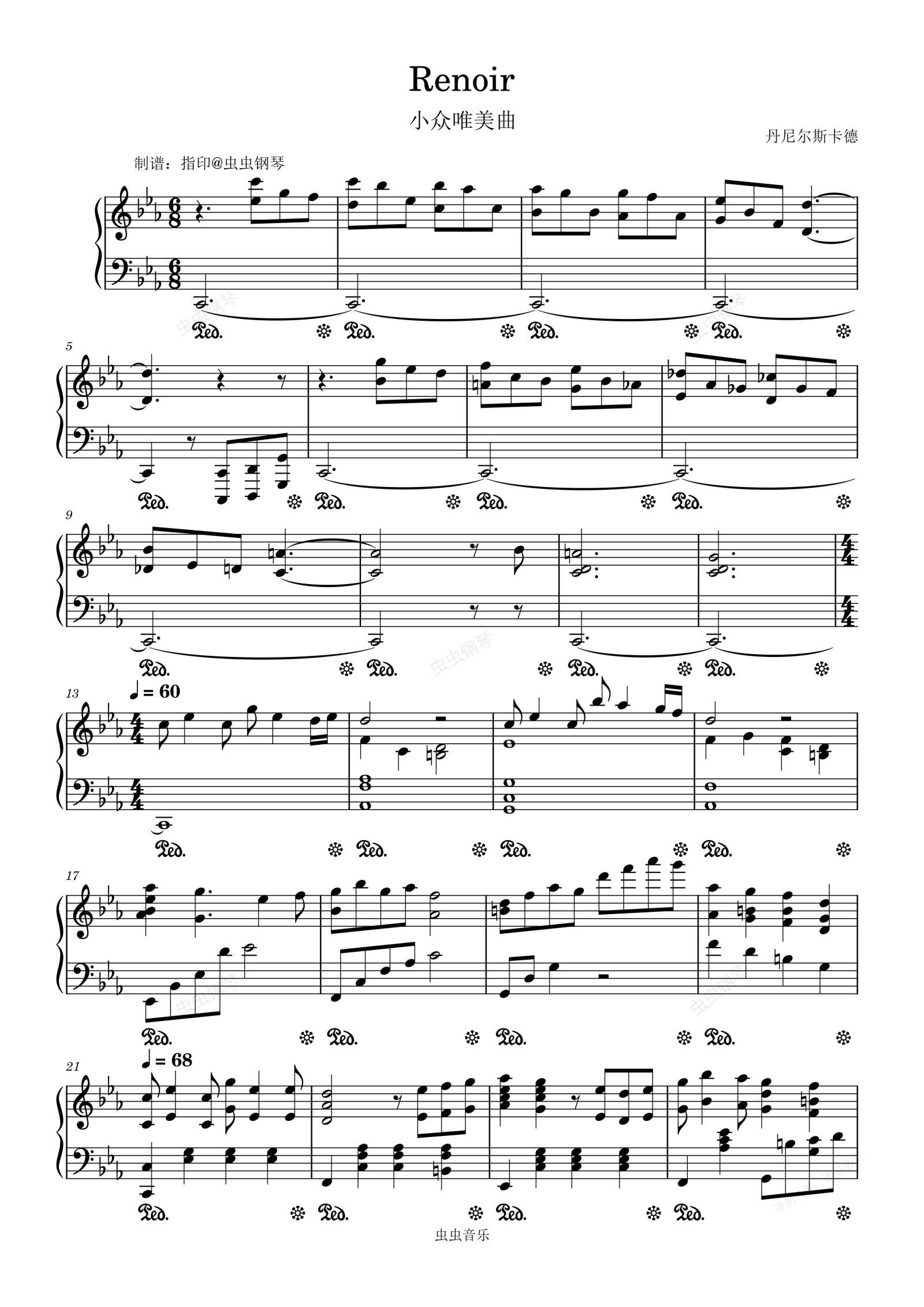 钢琴谱:小众唯美曲《Renoir》