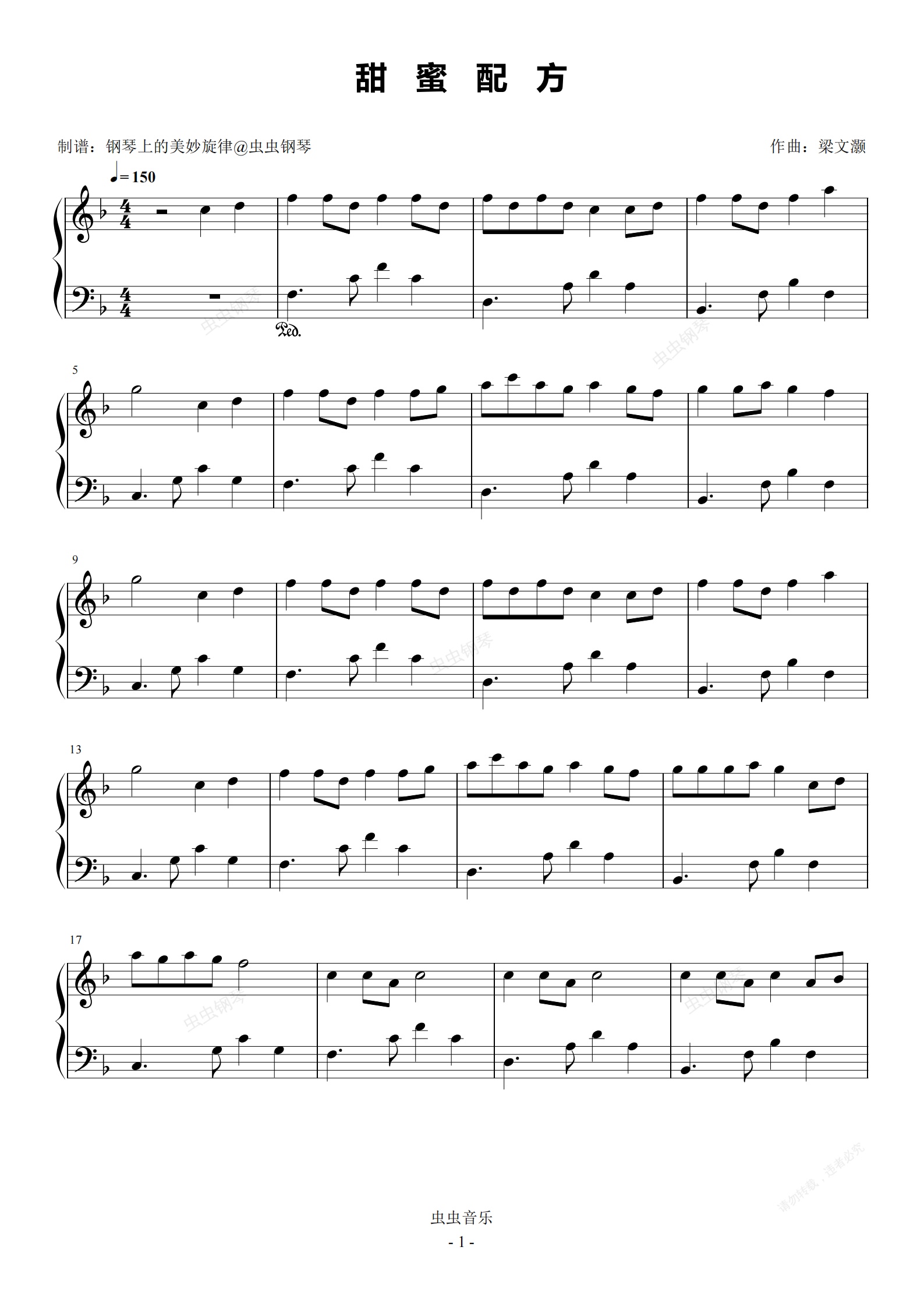 钢琴谱:甜蜜配方 简易版 姚晓棠