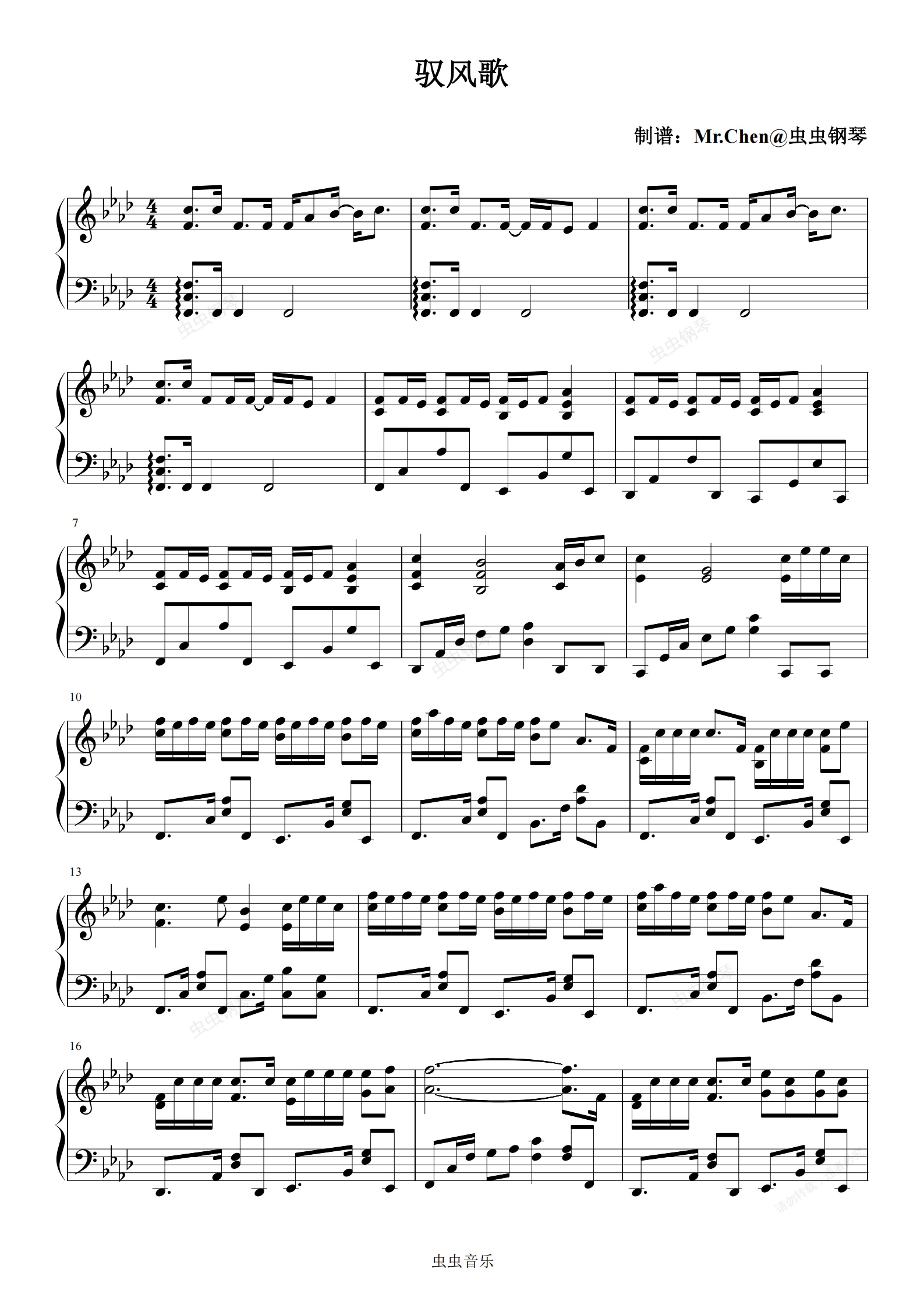钢琴谱:驭风歌 - 2026年春晚 张杰