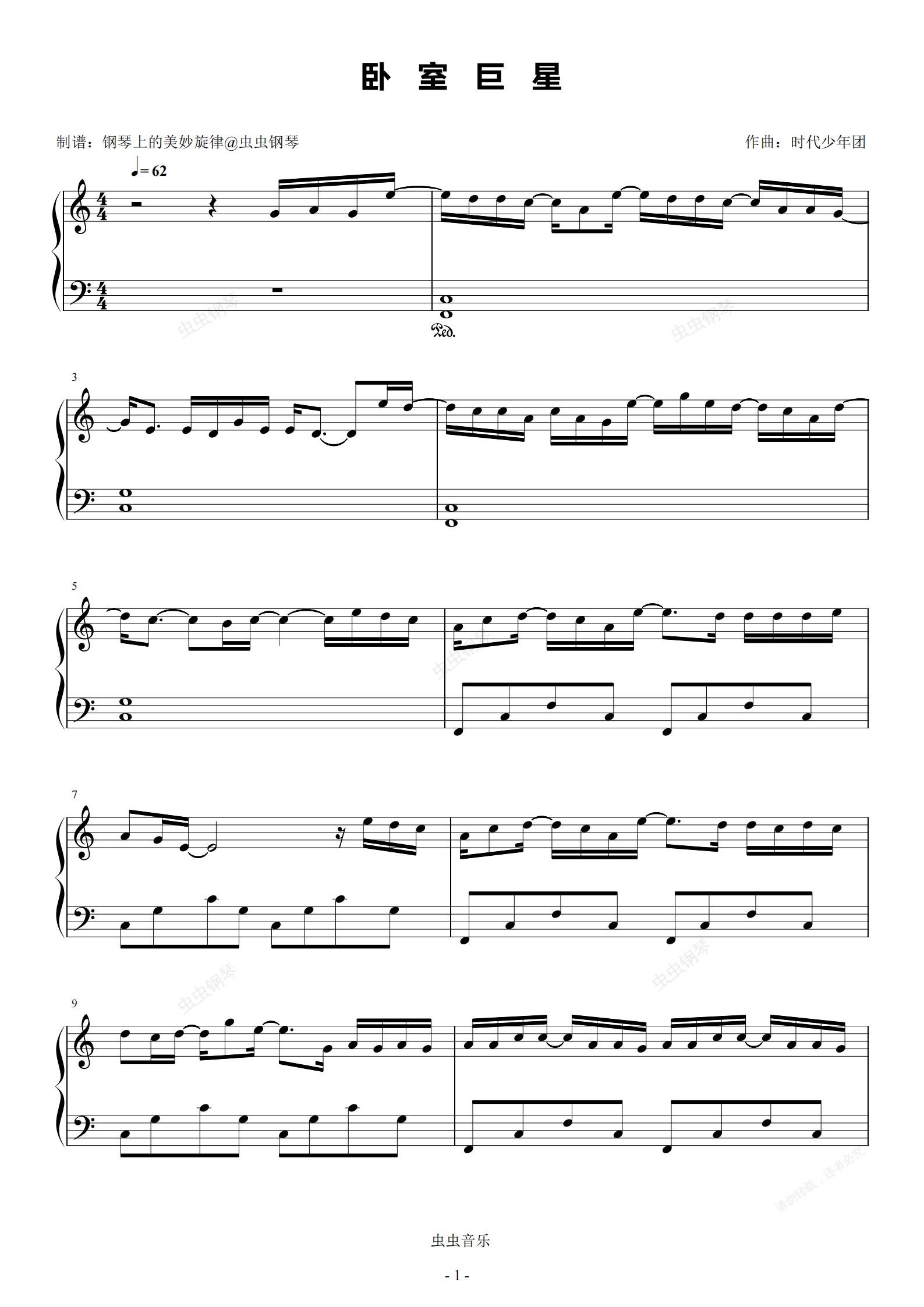 钢琴谱:卧室巨星 C调简易版 时代少年团