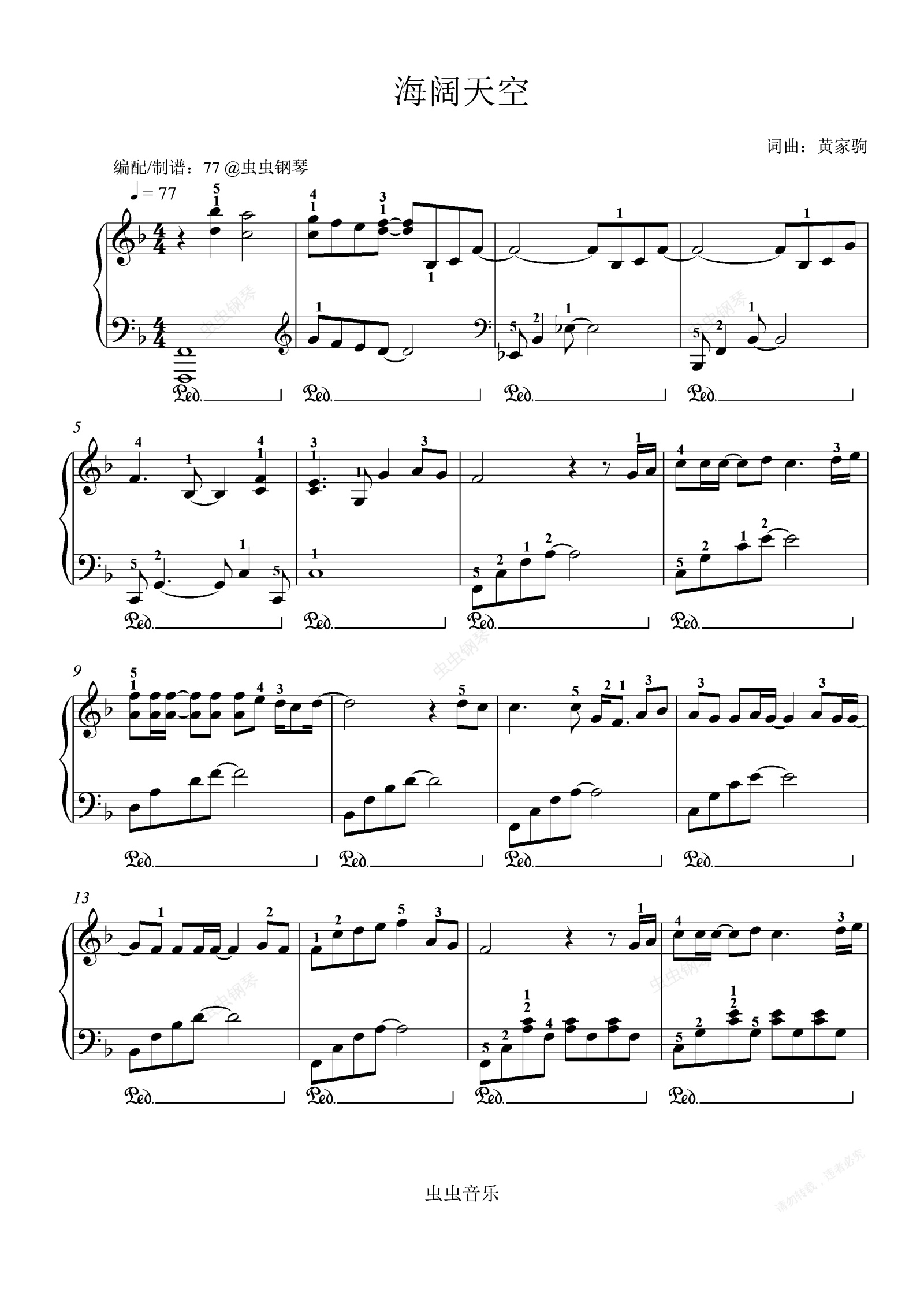 钢琴谱:BEYOND-《海阔天空》钢琴谱