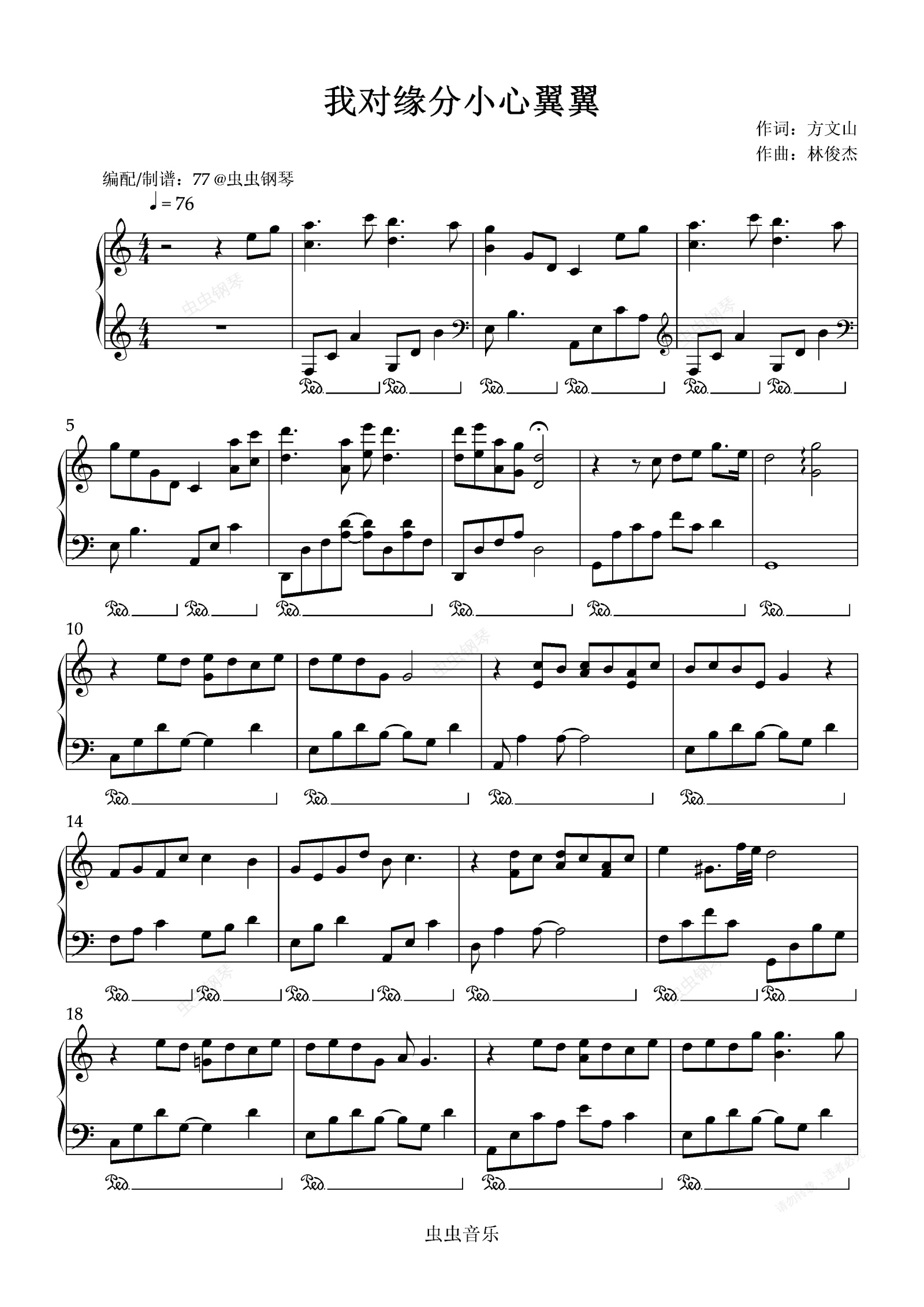钢琴谱:林俊杰-《我对缘分小心翼翼》C调钢琴谱