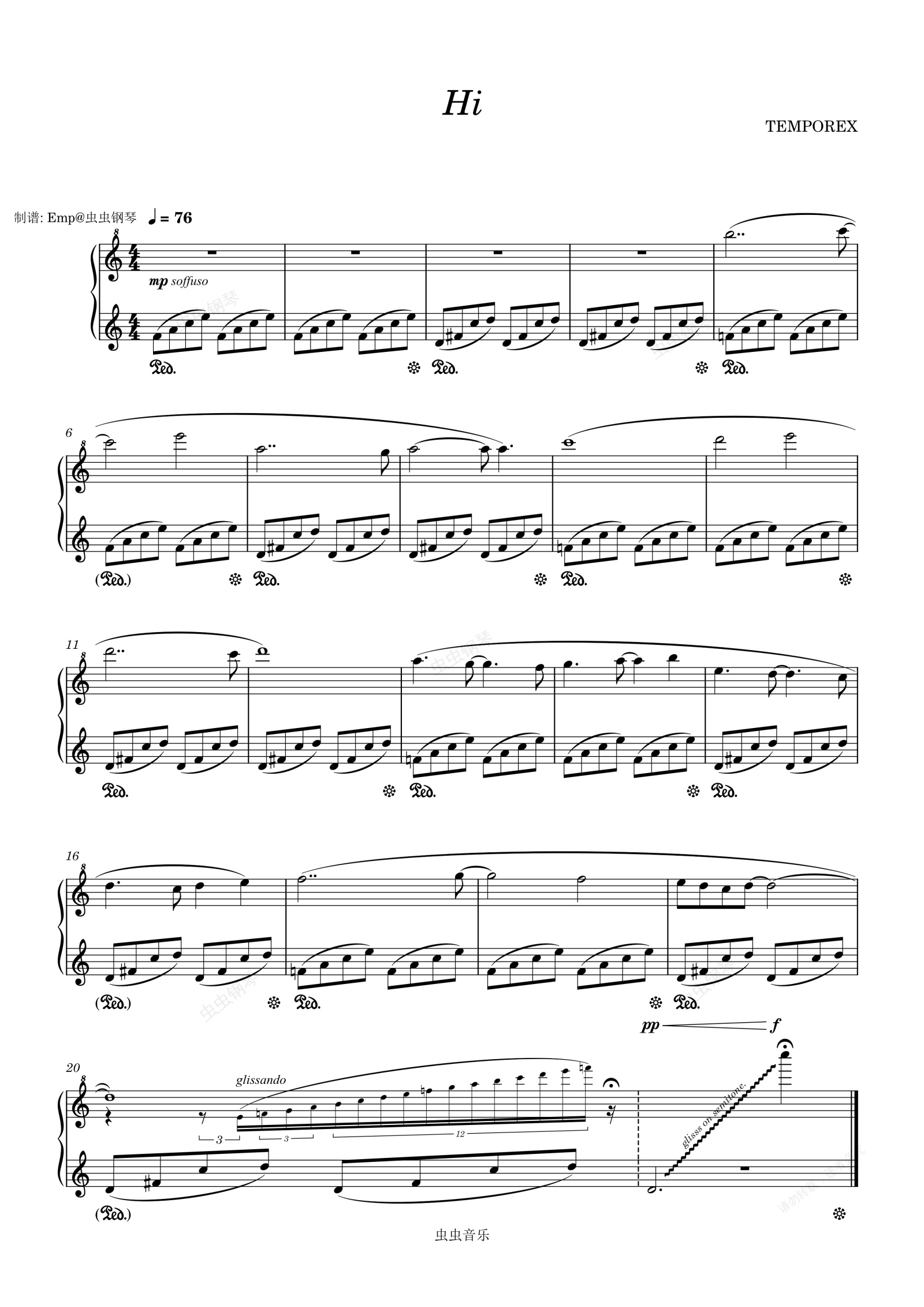 钢琴谱:Hi - TEMPOREX 钢琴扒谱分享—梦核の小曲