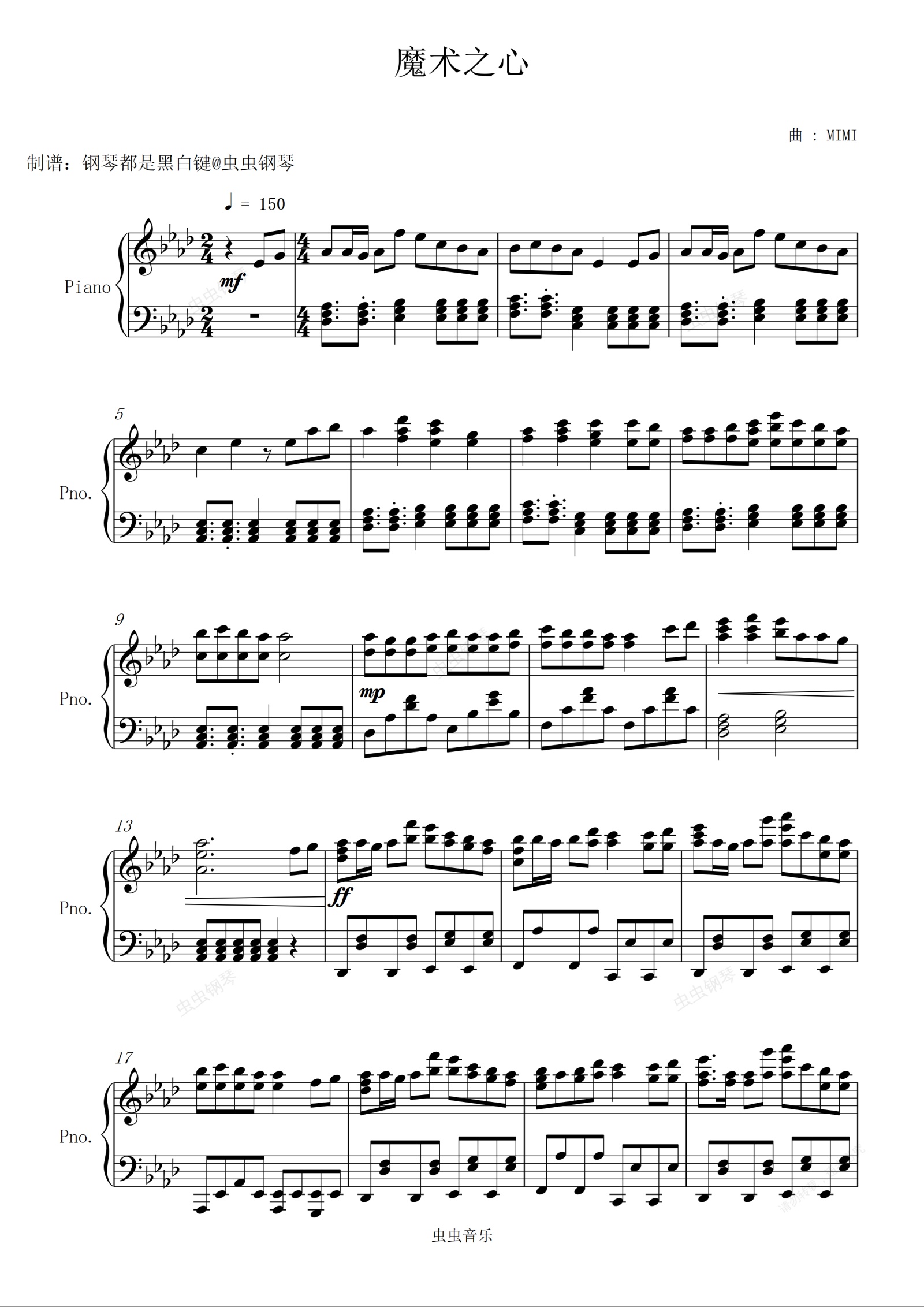 钢琴谱:【MIMI / 重音テト】魔术之心/トリックハート