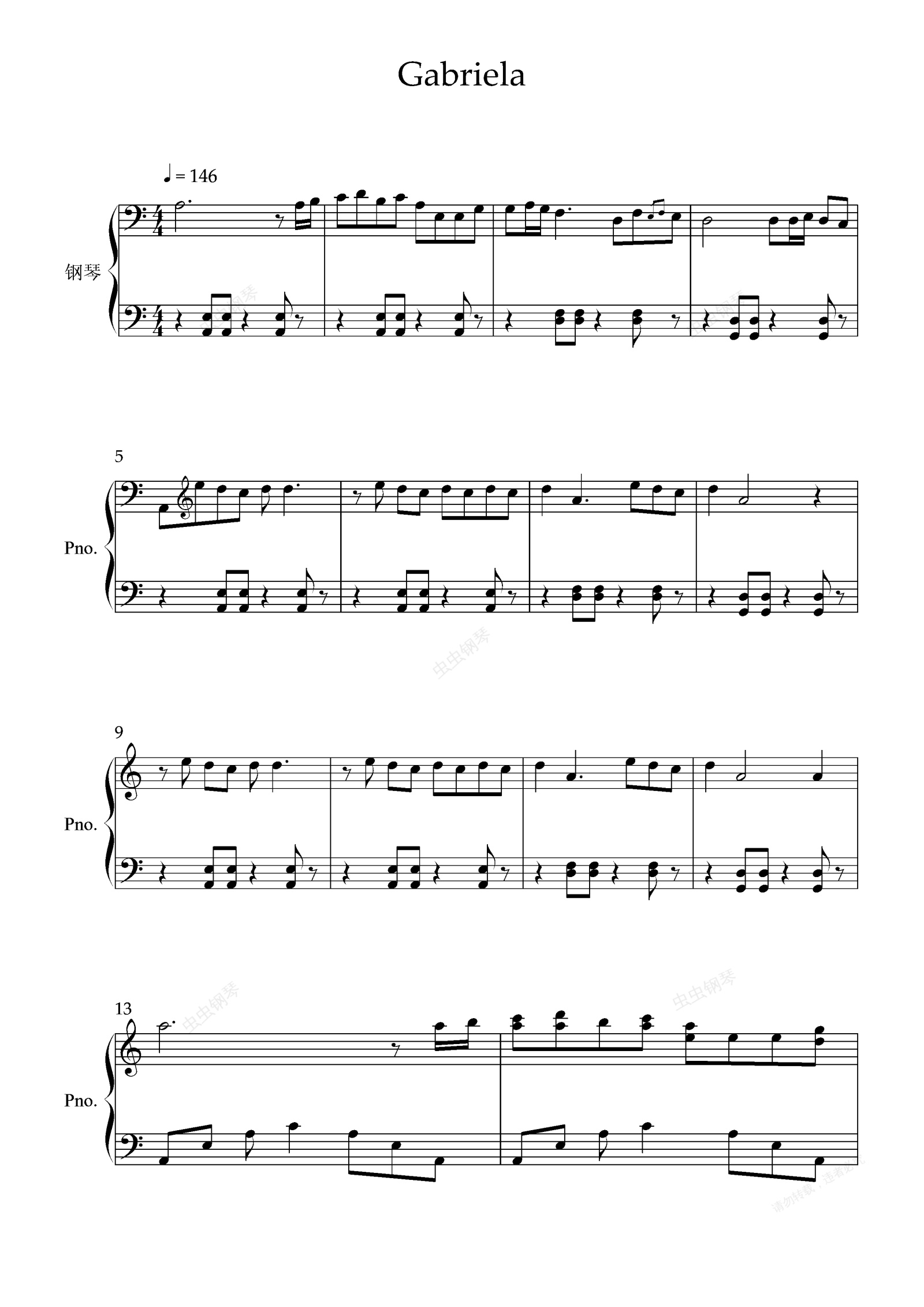 钢琴谱:Gabriela