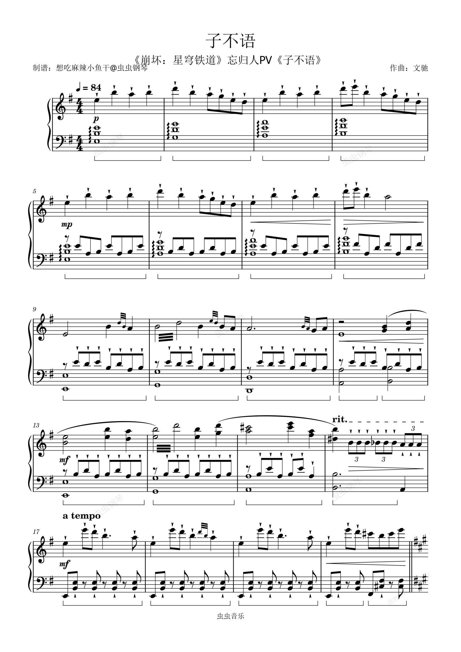 钢琴谱:子不语(《崩坏:星穹铁道》忘归人PV《子不语》)