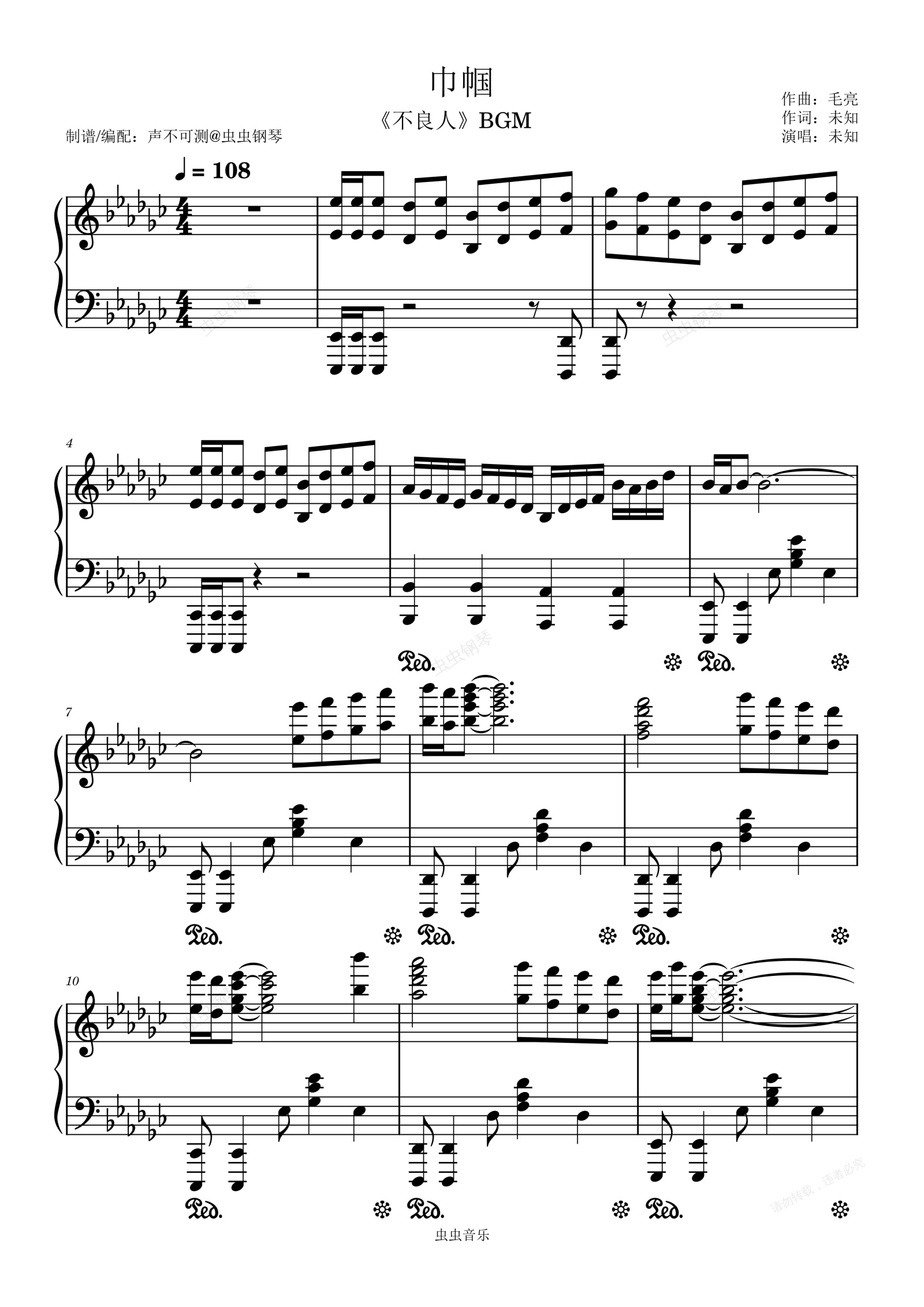钢琴谱:巾帼《不良人》BGM - 声不可测