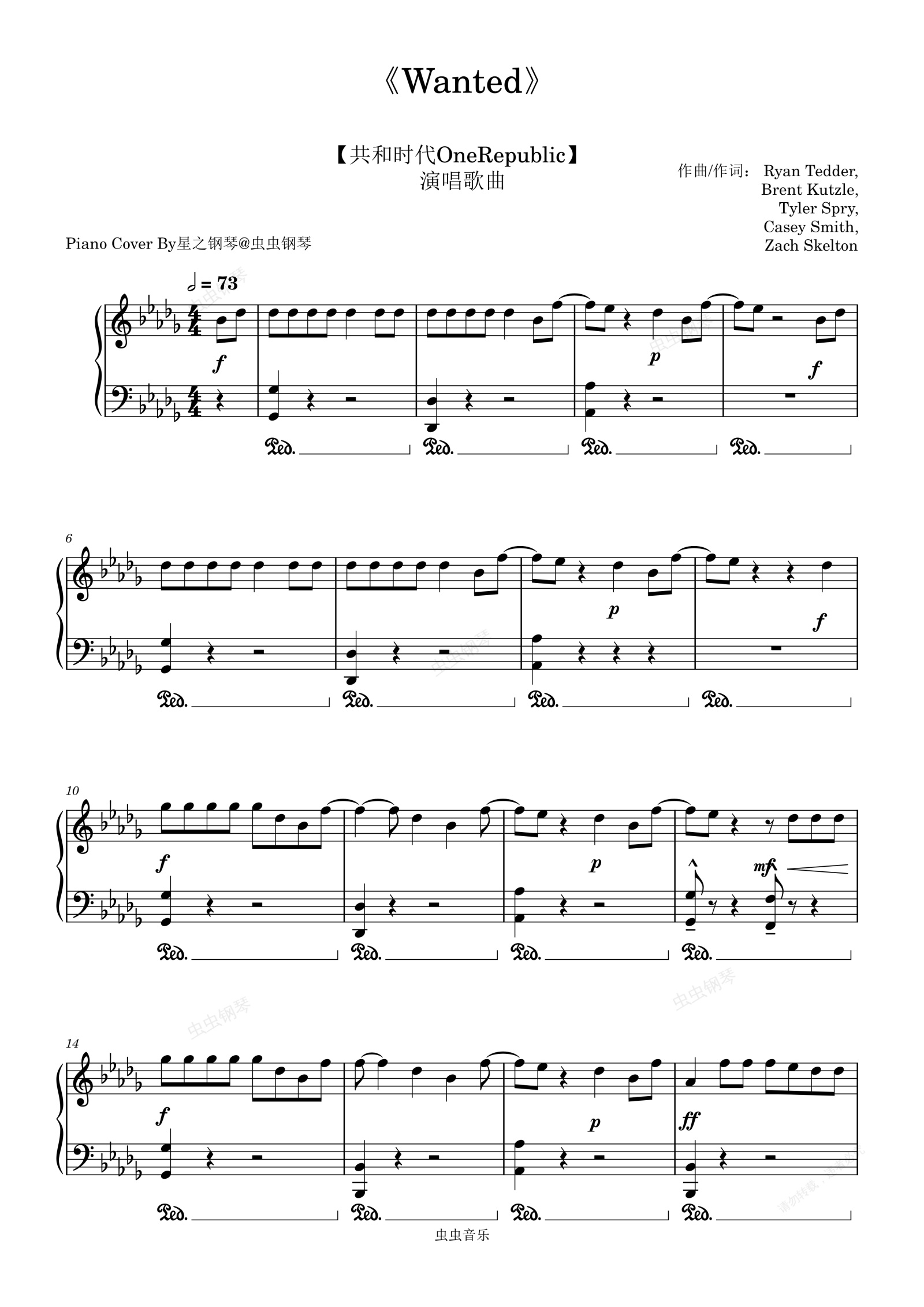钢琴谱:【共和时代OneRepublic】《Wanted》钢琴还原独奏谱~星之钢琴~