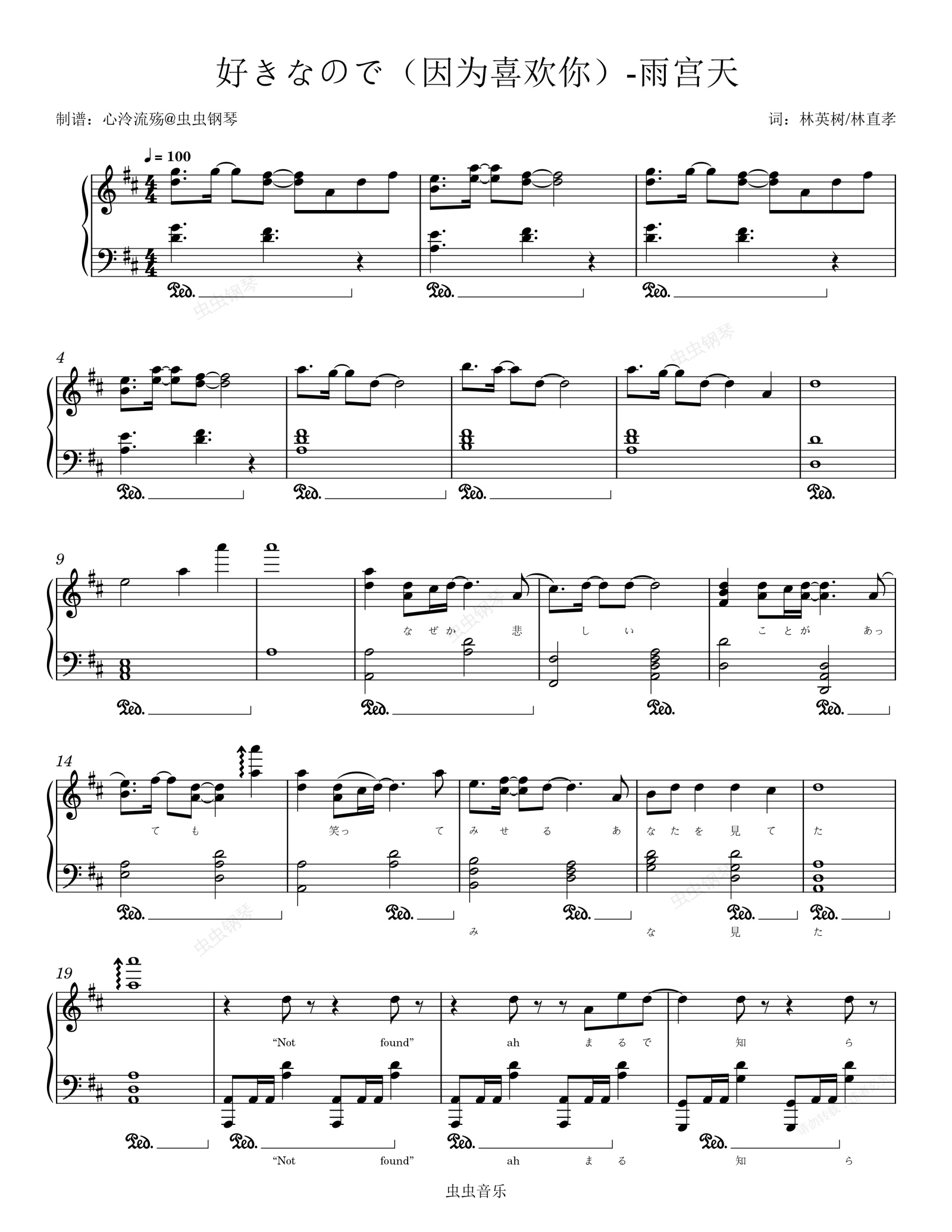 钢琴谱:可塑性记忆插曲-好きなので