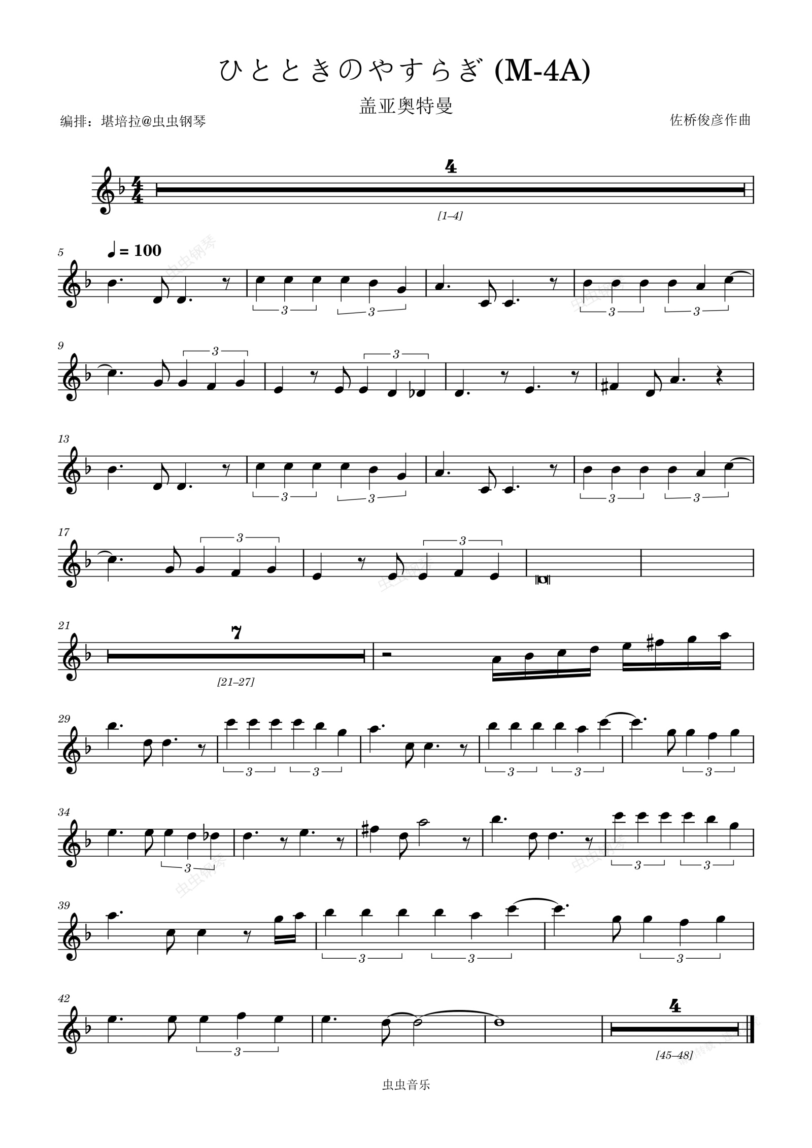 钢琴谱:盖亚奥特曼ひとときのやすらぎ (M-4A)长笛独奏旋律