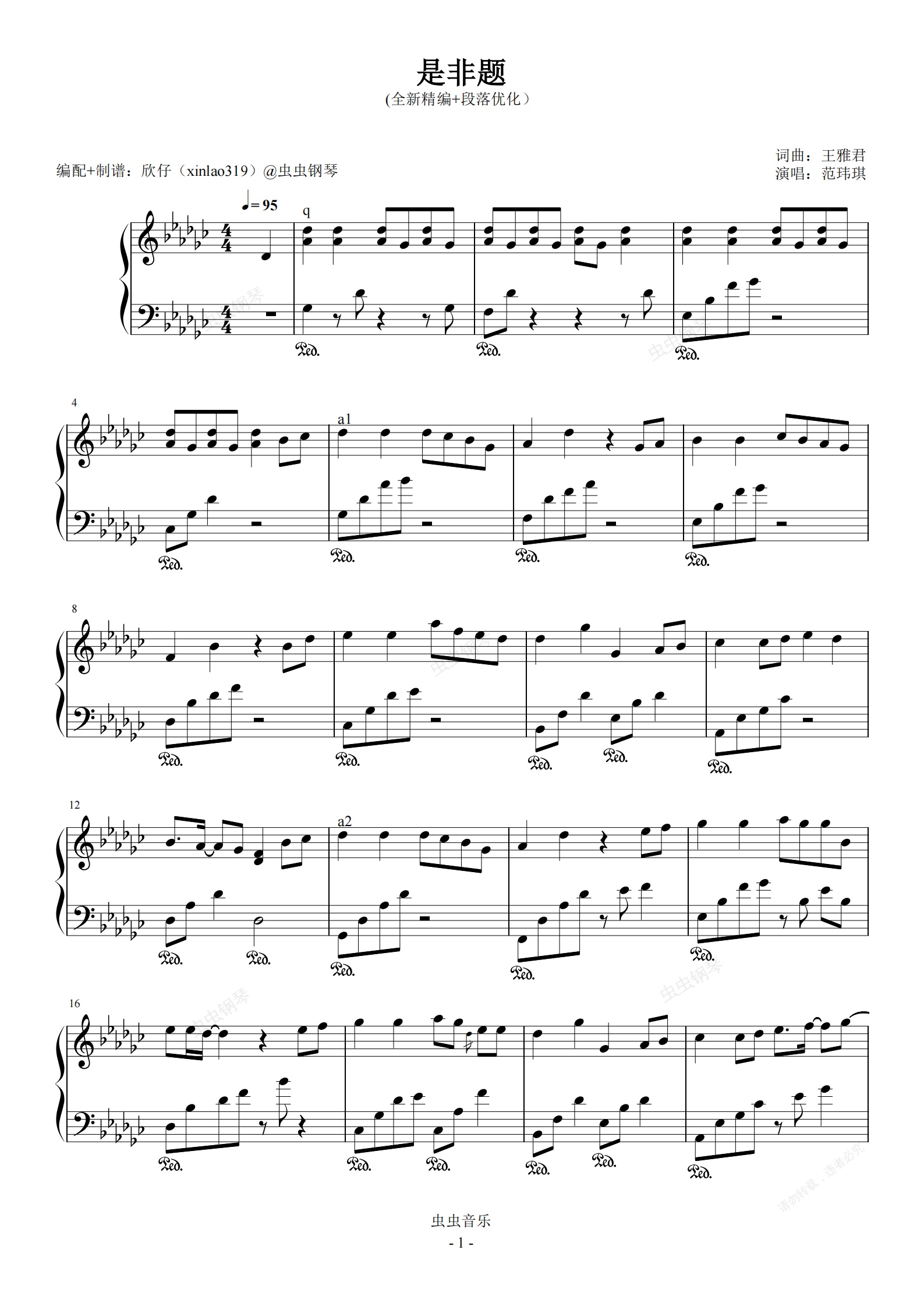 钢琴谱:是非题(原调降G、范玮琪、段落优化)