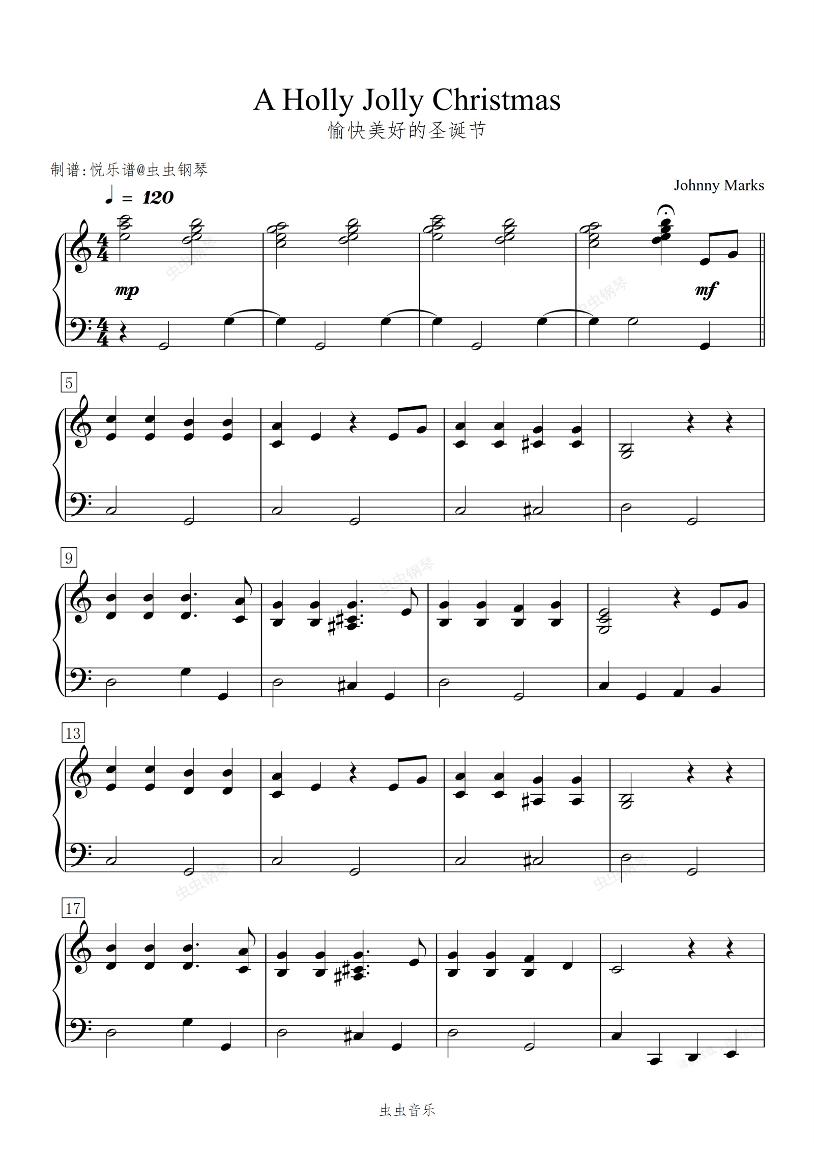 钢琴谱:愉快美好的圣诞节/A Holly Jolly Christmas 【抒情】