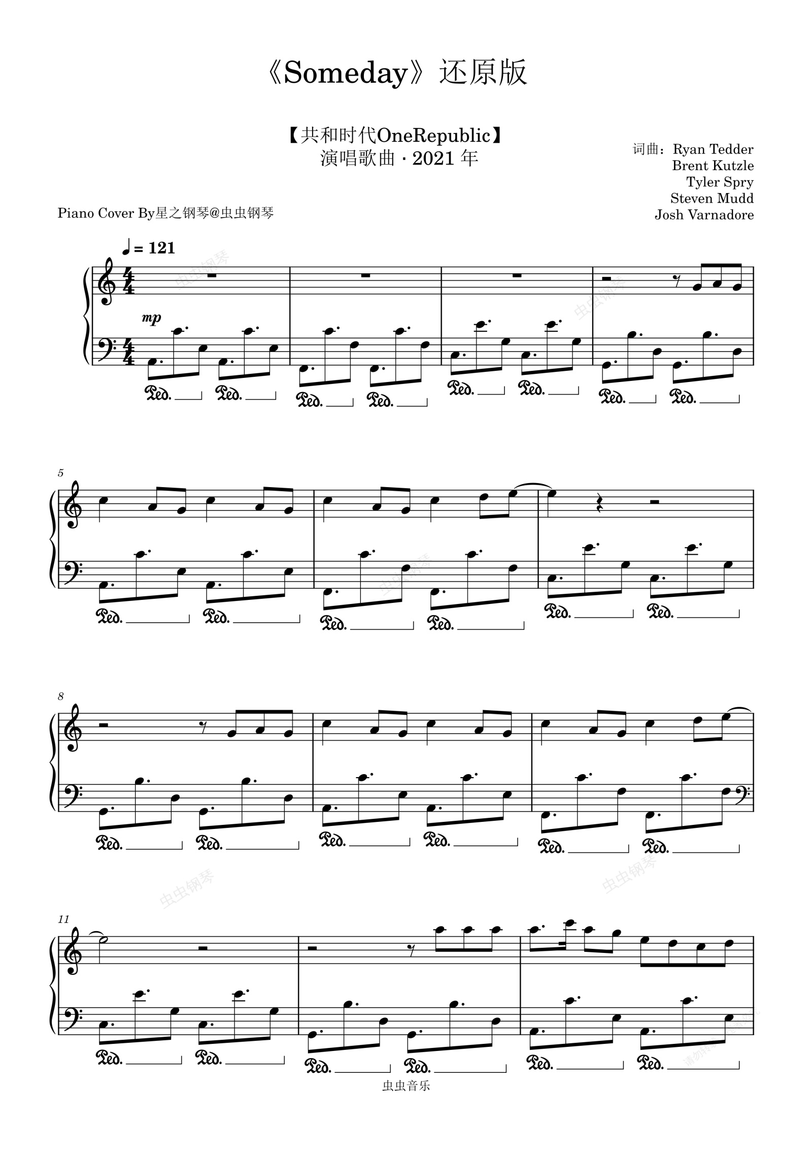 钢琴谱:【共和时代OneRepublic】《Someday》还原钢琴谱~星之钢琴~
