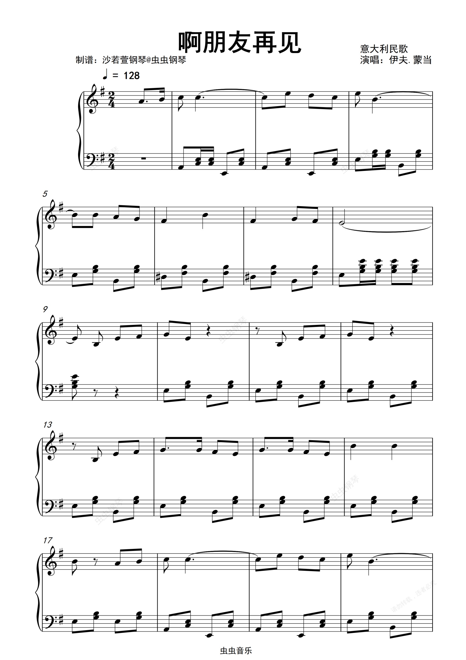 钢琴谱:啊朋友再见
