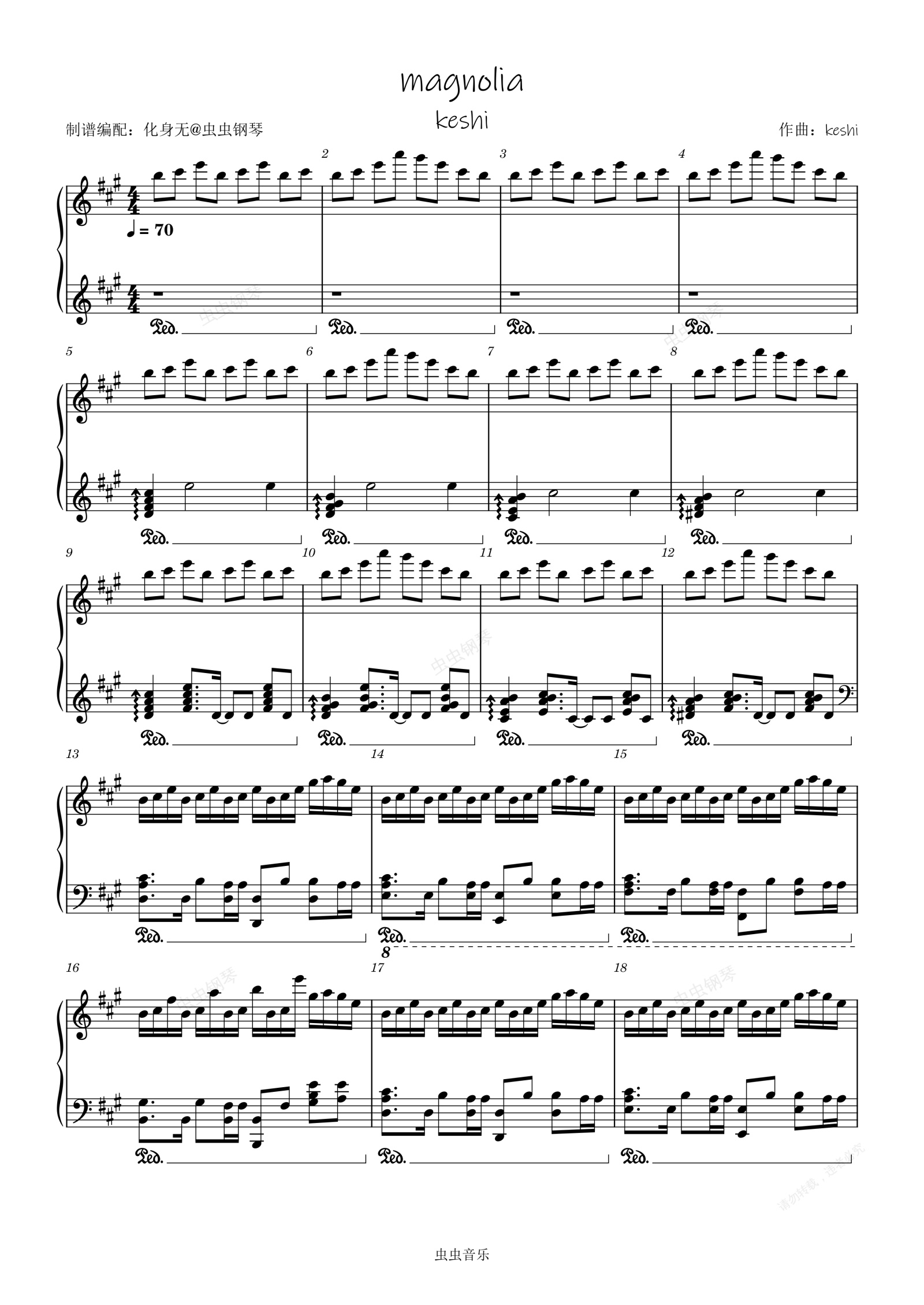 钢琴谱:magnolia 原调独奏版 化身无编配