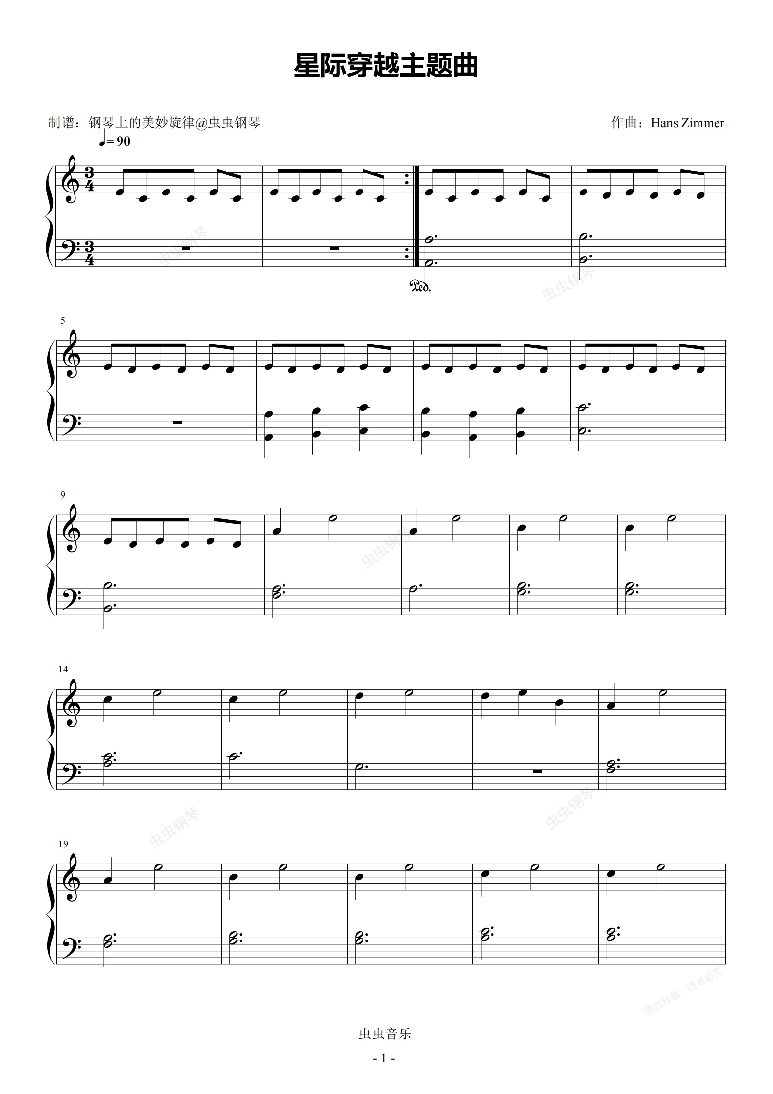 钢琴谱:星际穿越主题曲 C调简易版