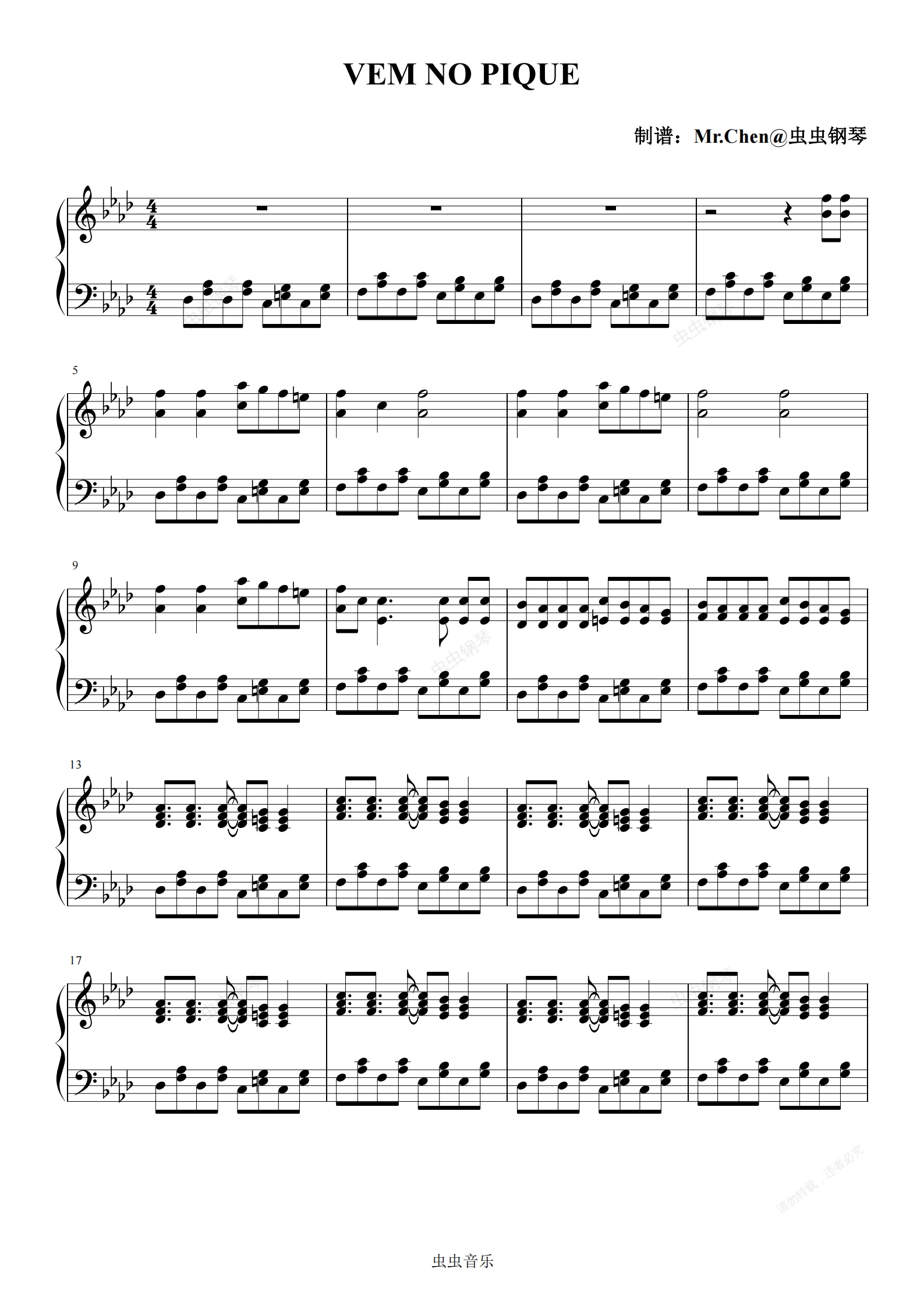 钢琴谱:VEM NO PIQUE - 巴西Funk 极度还原