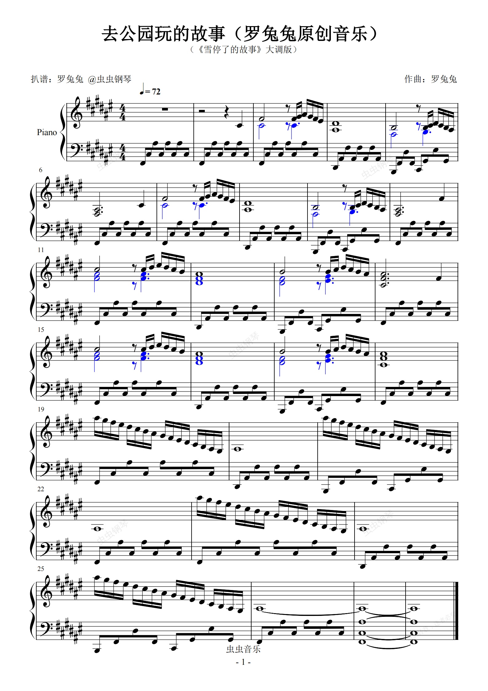 钢琴谱:去公园玩的故事(罗兔兔原创音乐)(《雪停了的故事》大调版)