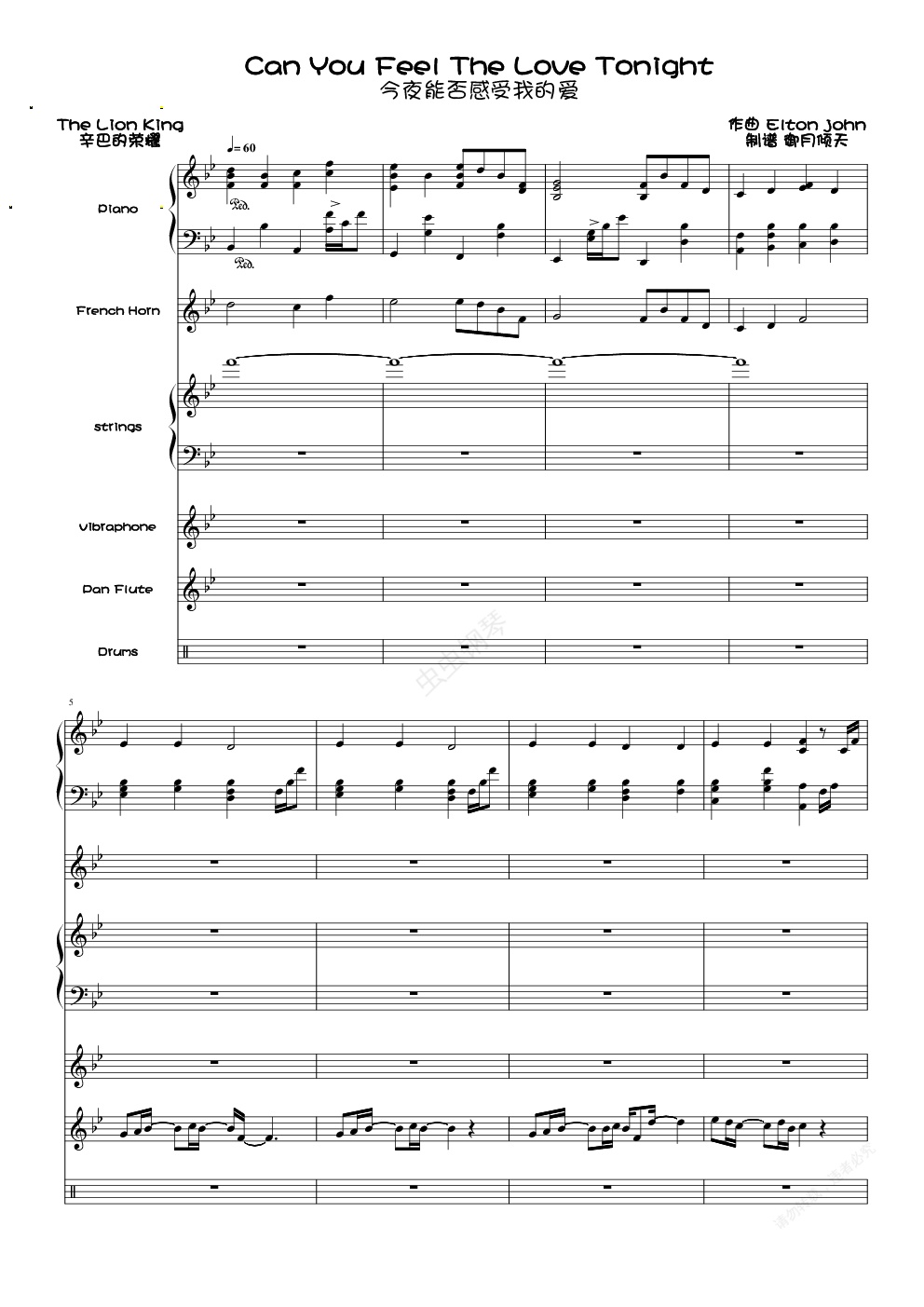 钢琴谱:Can You Feel The Love Tonight(总谱)