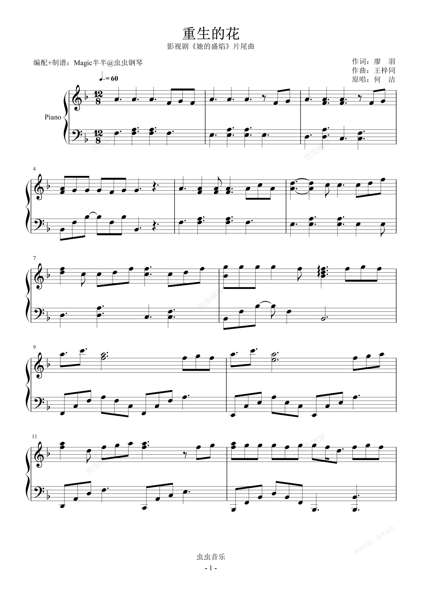 钢琴谱:重生的花(实用精华版/独奏F) <她的盛焰>影视剧ED