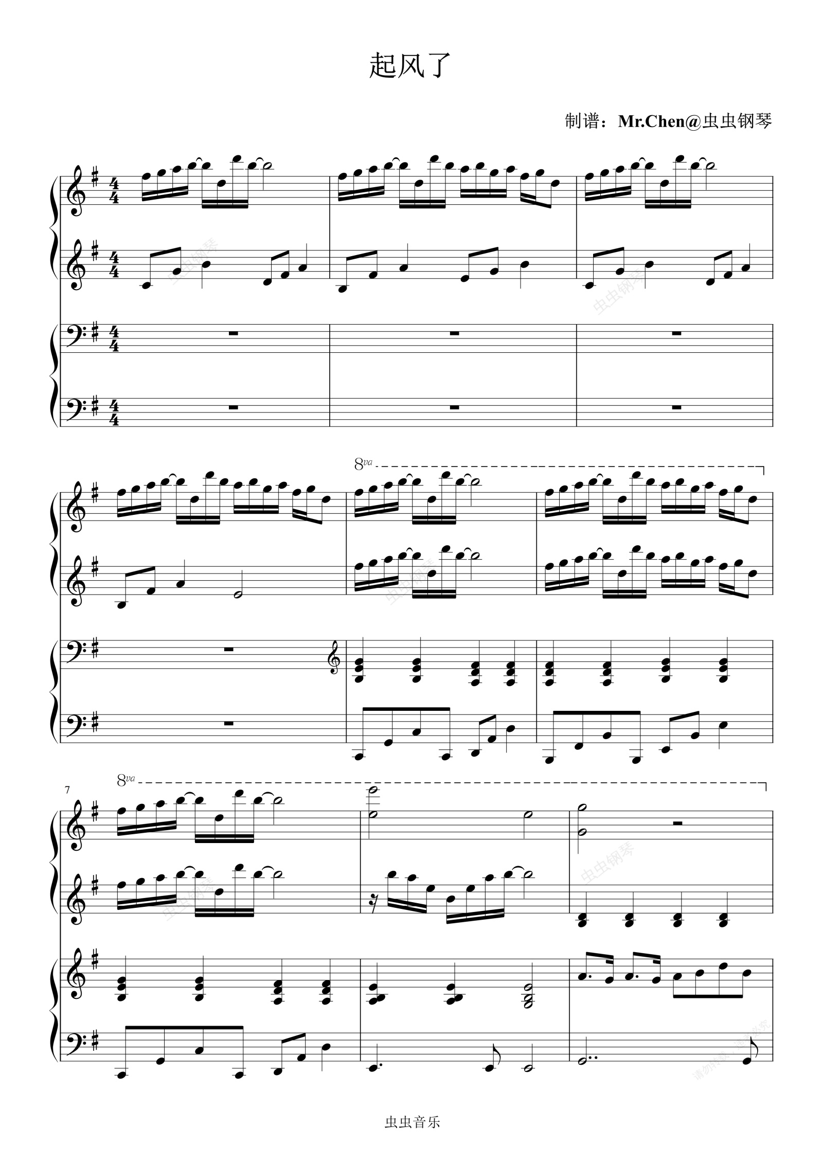 钢琴谱:起风了 (四手联弹)- 买辣椒也用券 极度还原