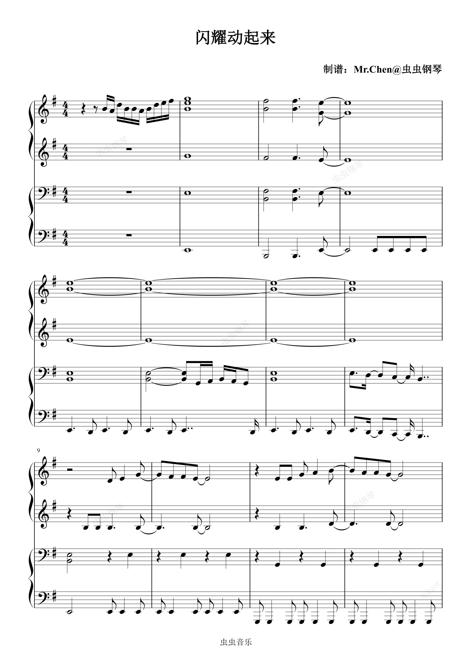 钢琴谱:闪耀动起来 (四手联弹)G调 - 2026年春晚歌曲