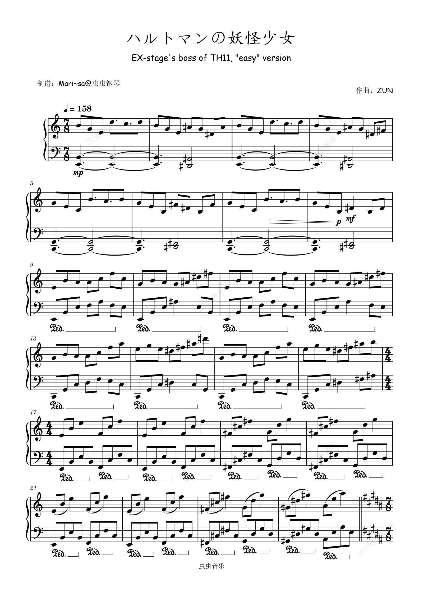 钢琴谱:哈德曼的妖怪少女 -「Easy」