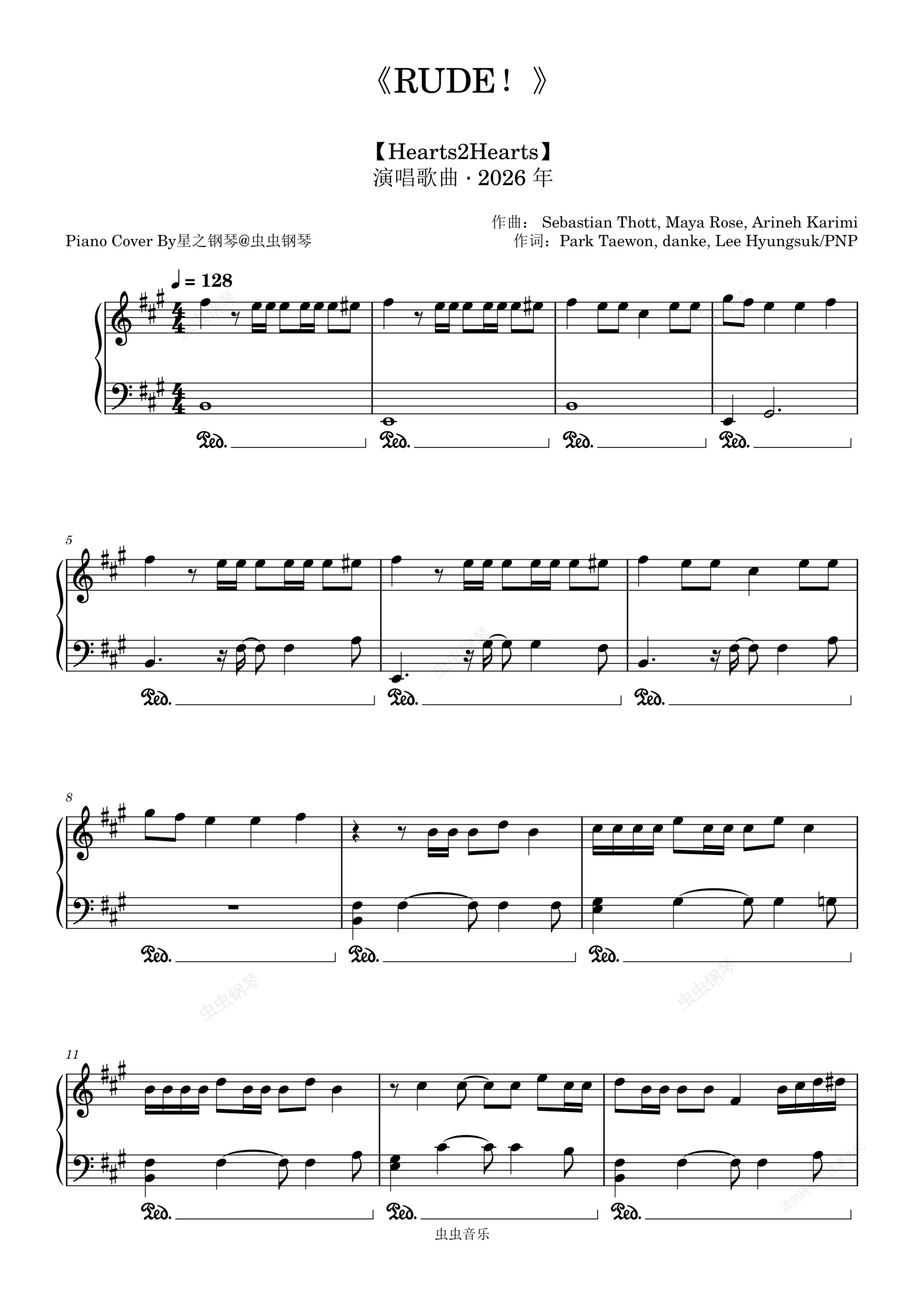 钢琴谱:【Hearts2Hearts】《RUDE!》还原钢琴谱~星之钢琴~