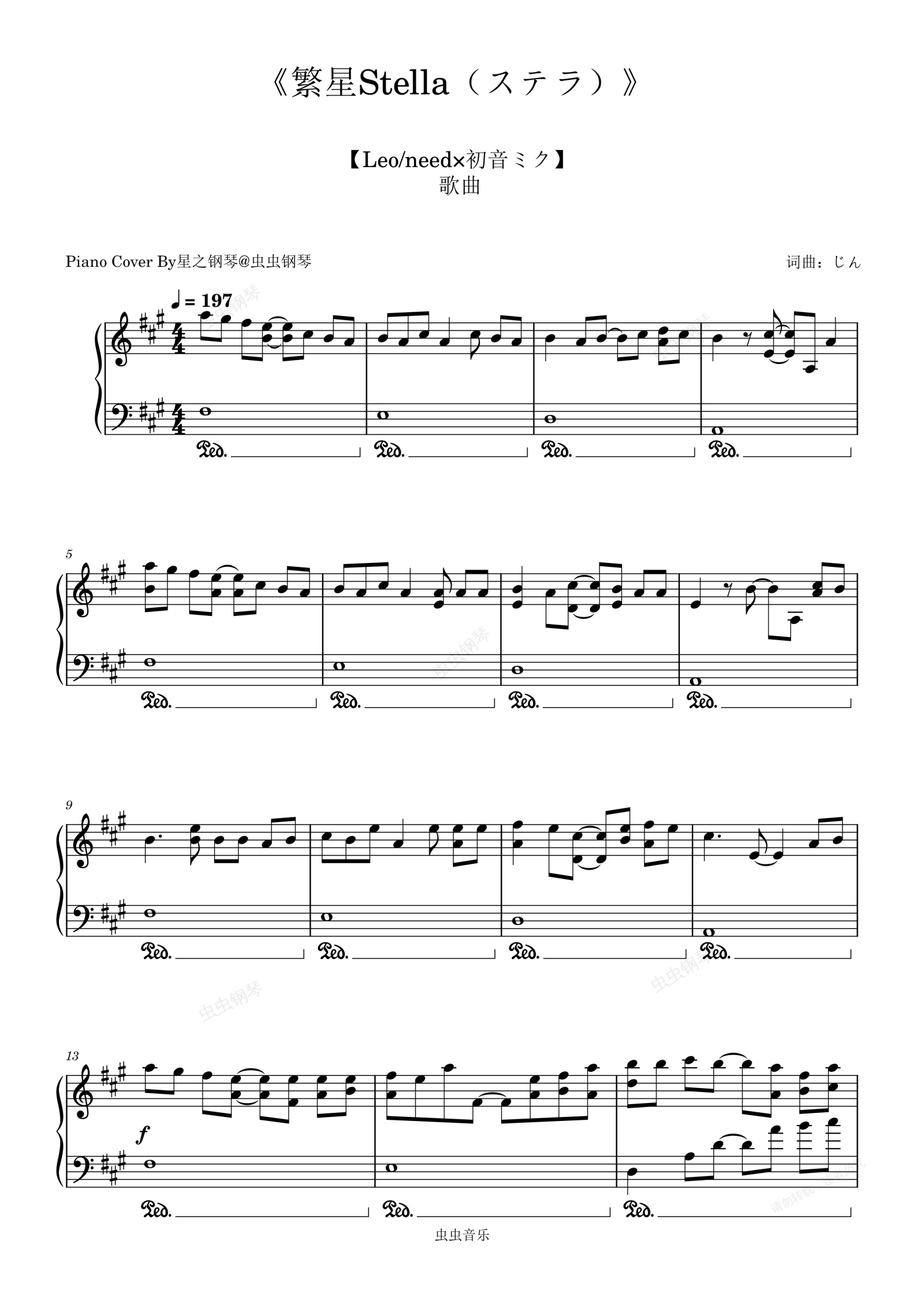钢琴谱:【Leo/need-初音未来】《繁星Stella》还原独奏钢琴谱~星之钢琴~