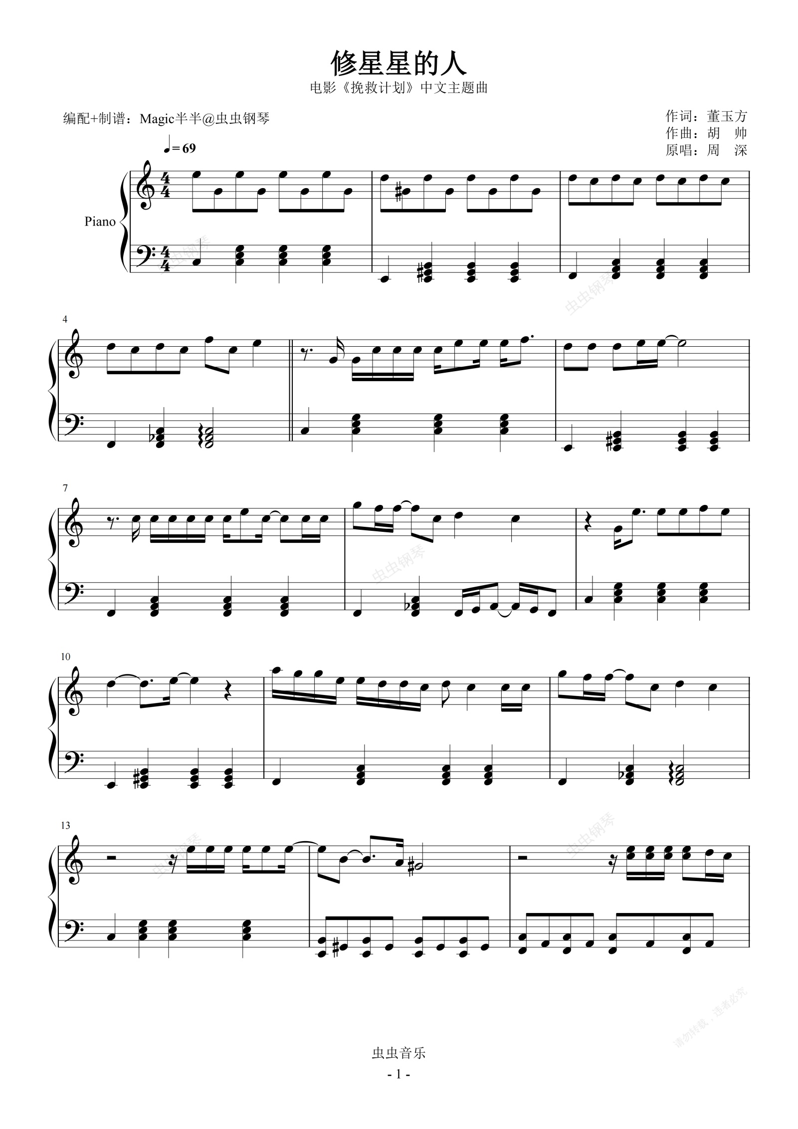 钢琴谱:修星星的人(实用精华版/独奏C) <挽救计划>电影中文主题曲
