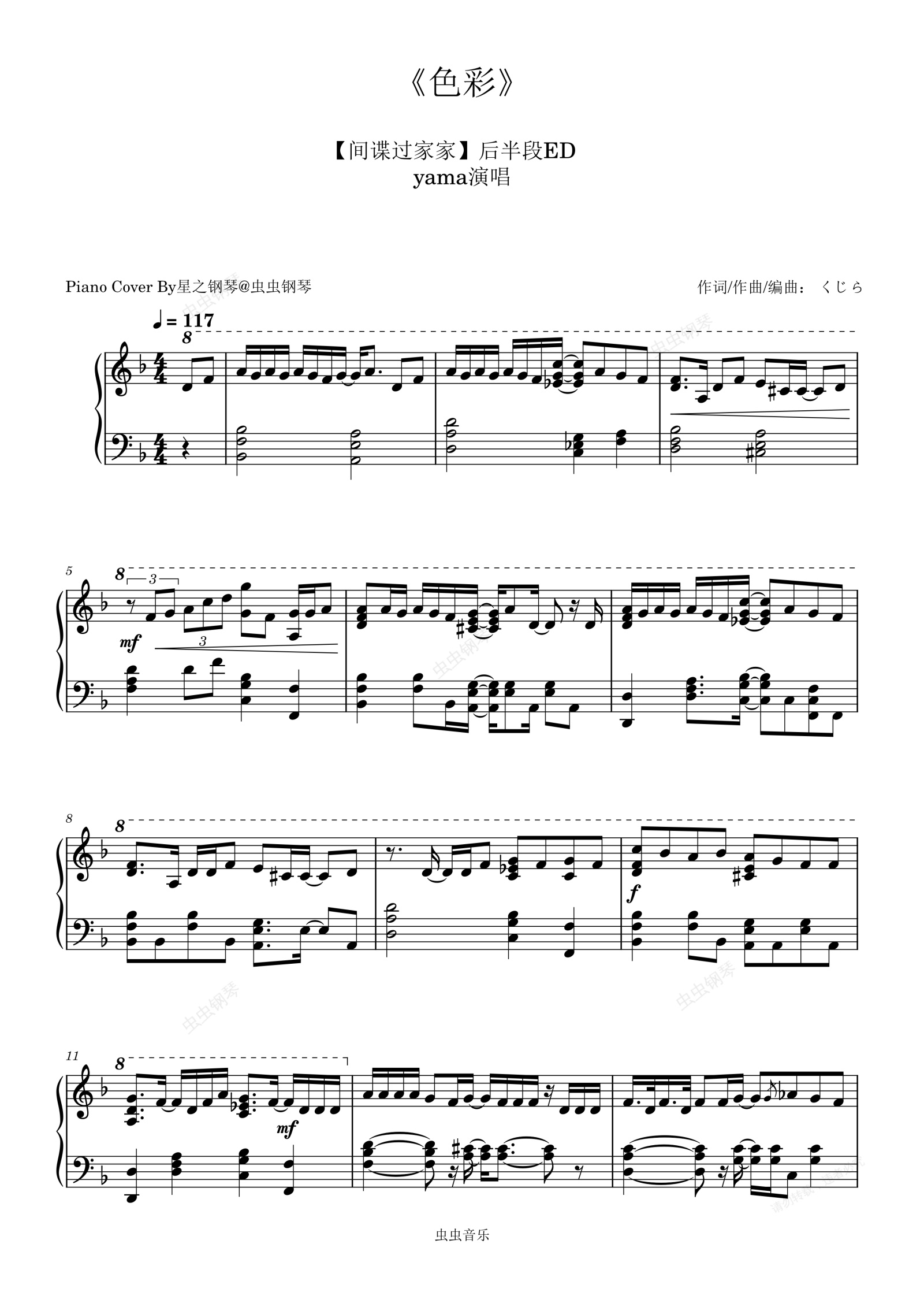 钢琴谱:【间谍过家家】ED2《色彩》还原钢琴谱~星之钢琴~