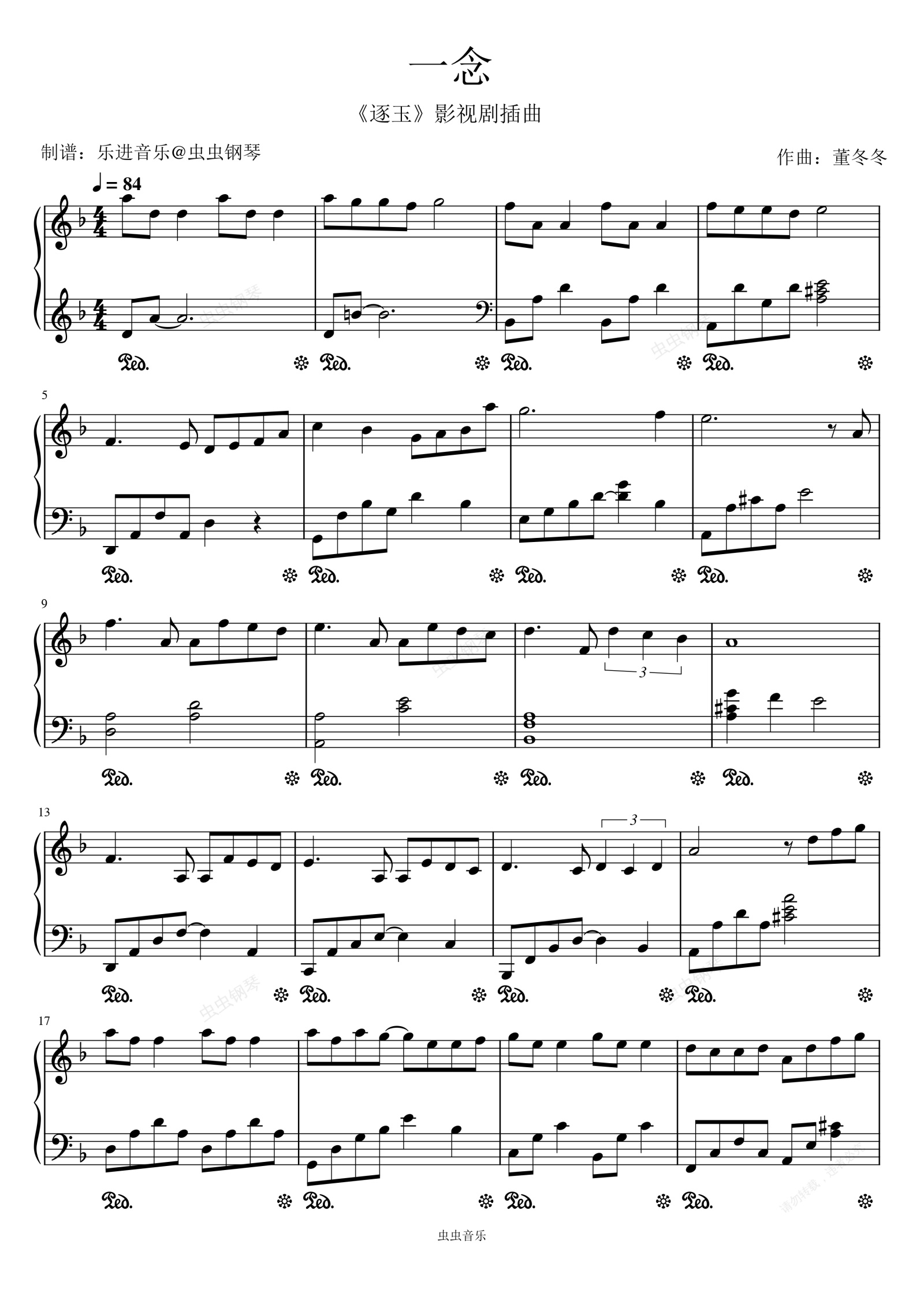 钢琴谱:《一念》原调深情版
