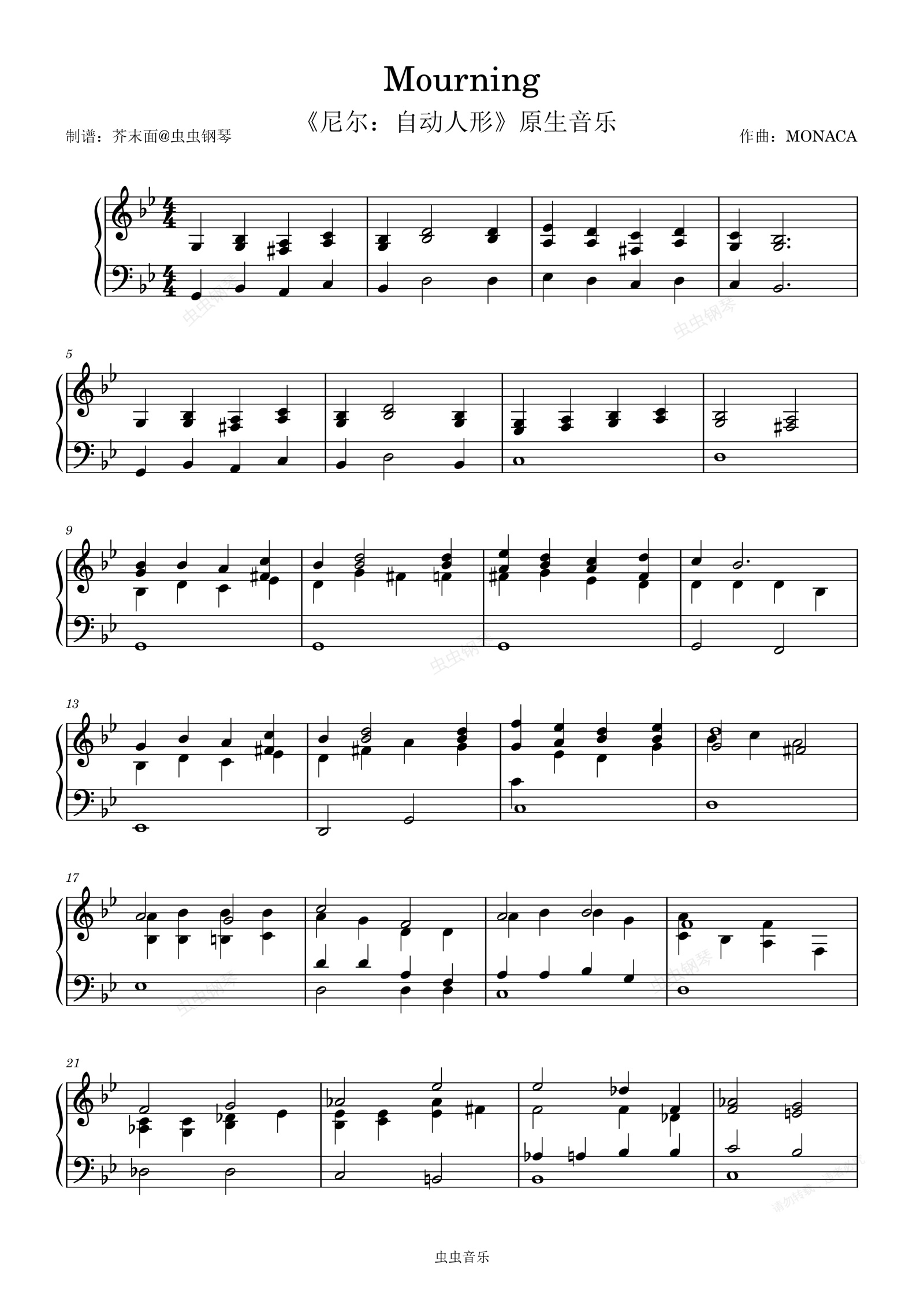 钢琴谱:Mourning(《尼尔:人工生命》配乐)