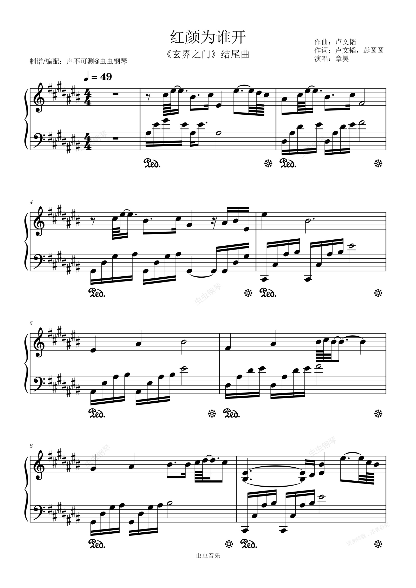 钢琴谱:红颜为谁开《玄界之门》结尾曲高度还原 - 声不可测