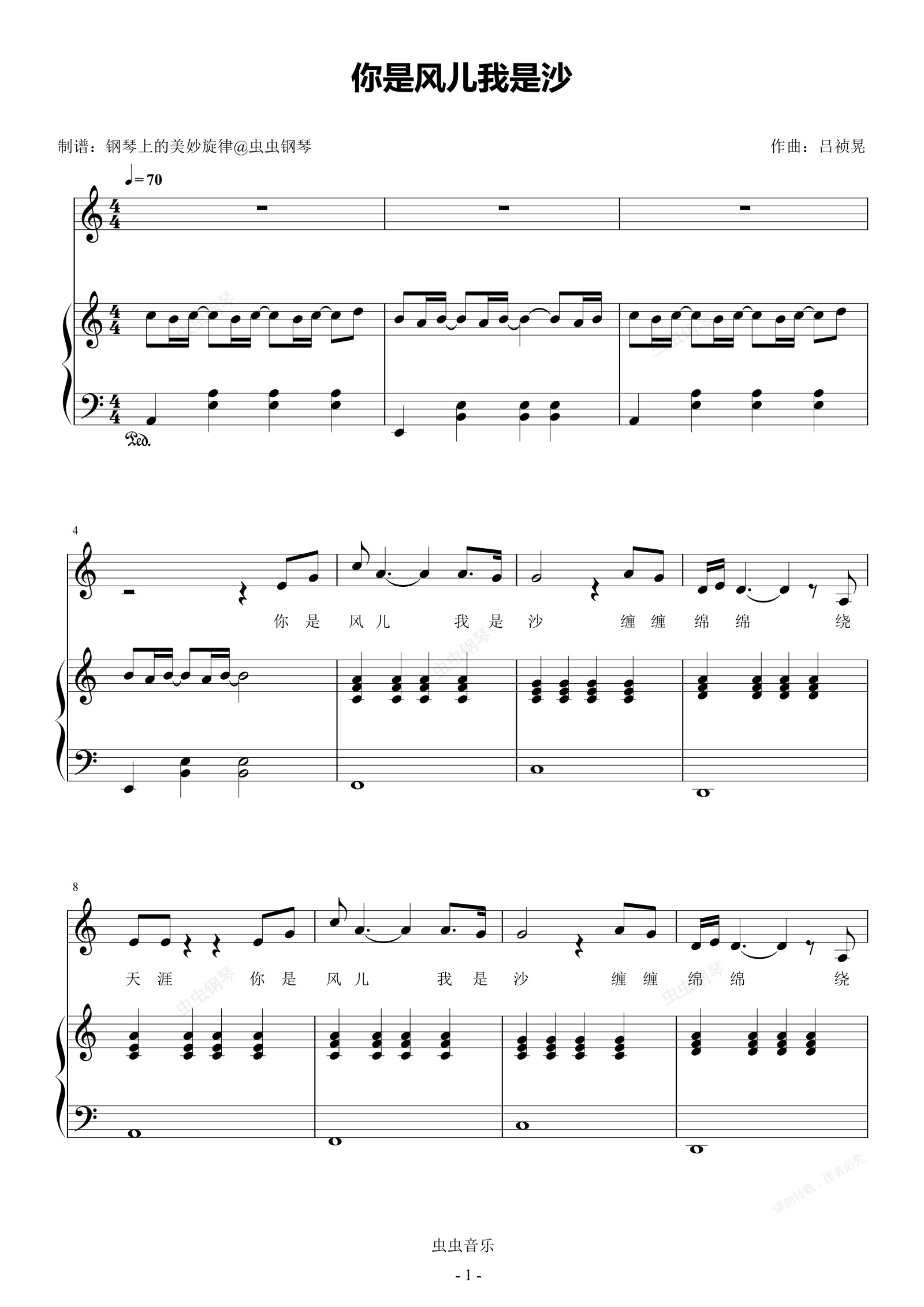 钢琴谱:你是风儿我是沙 C调简易钢琴弹唱伴奏 带歌词 周杰/林心如