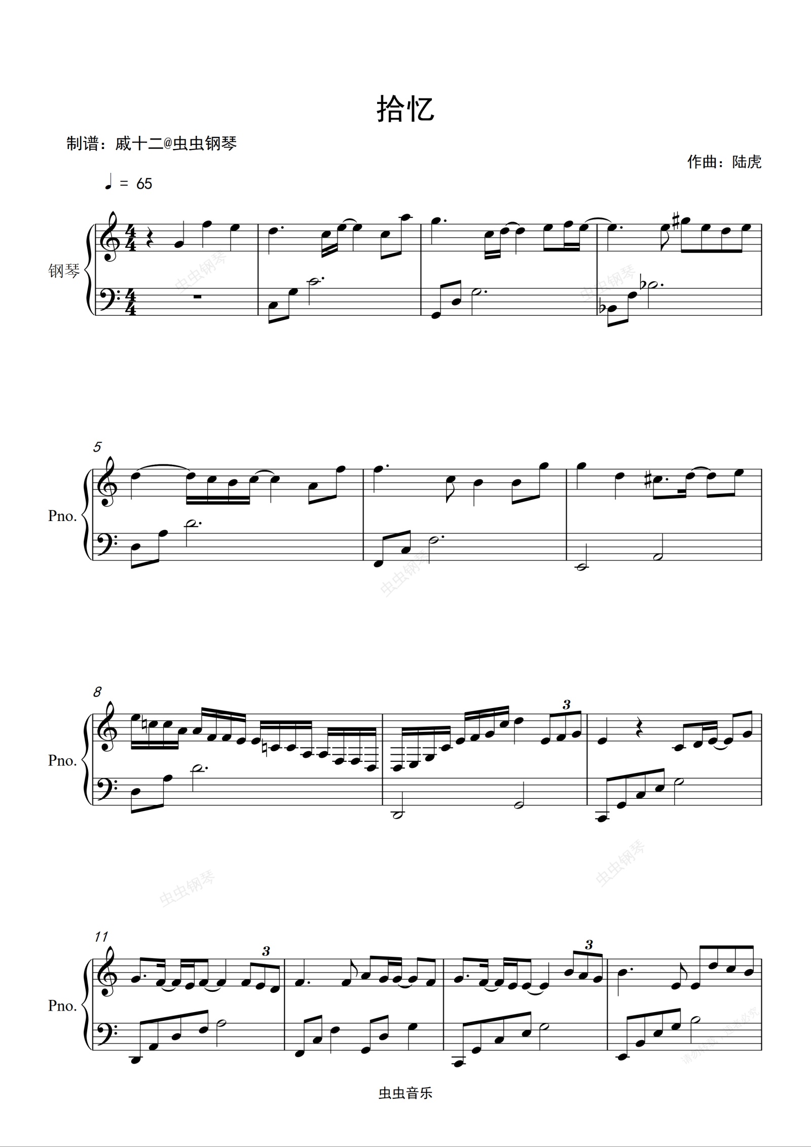 钢琴谱:拾忆-C调简单版