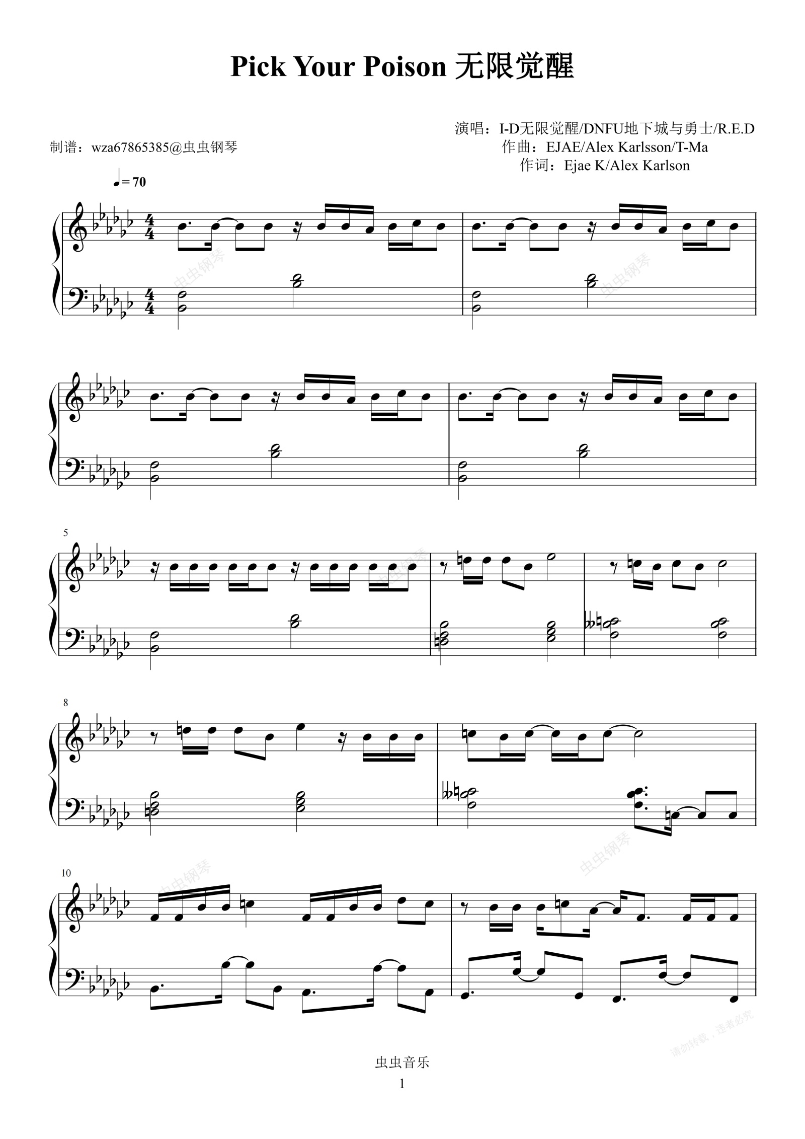 钢琴谱:Pick Your Poison 无限觉醒