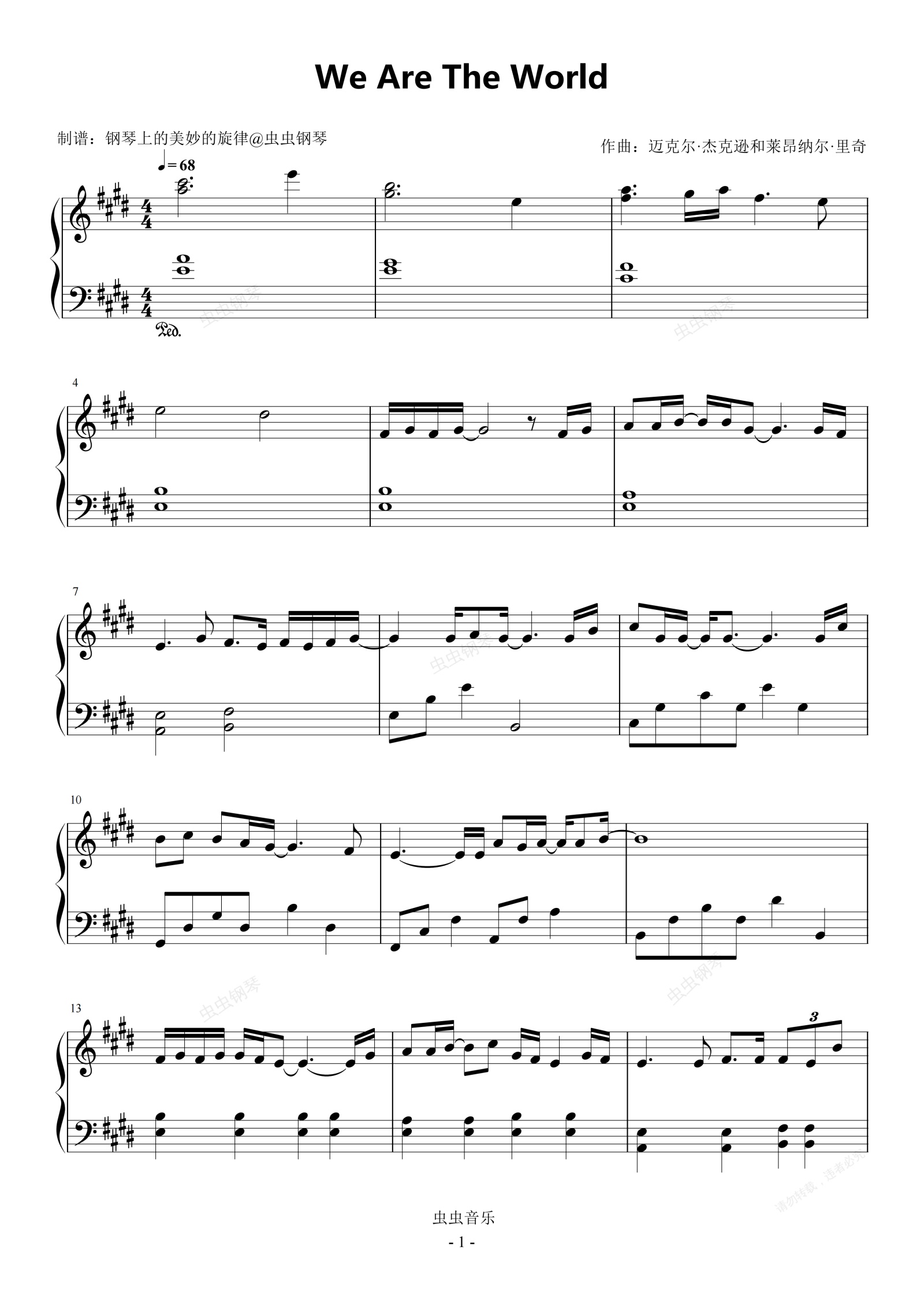 钢琴谱:We Are The World 原调简易版 迈克尔·杰克逊