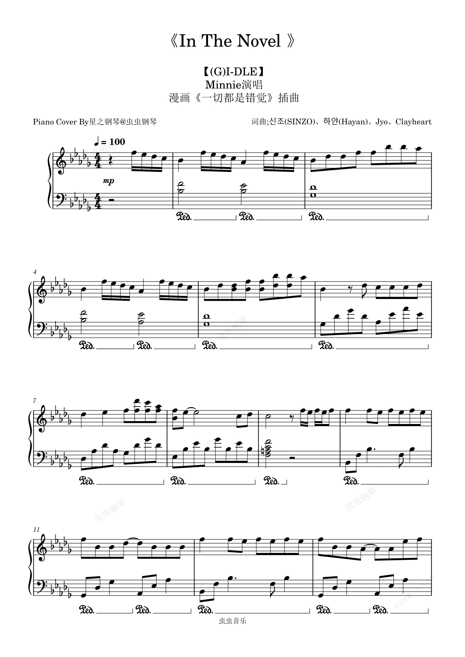 钢琴谱:【MINNIE((G)I-DLE)】《In The Novel 》还原钢琴谱~星之钢琴~