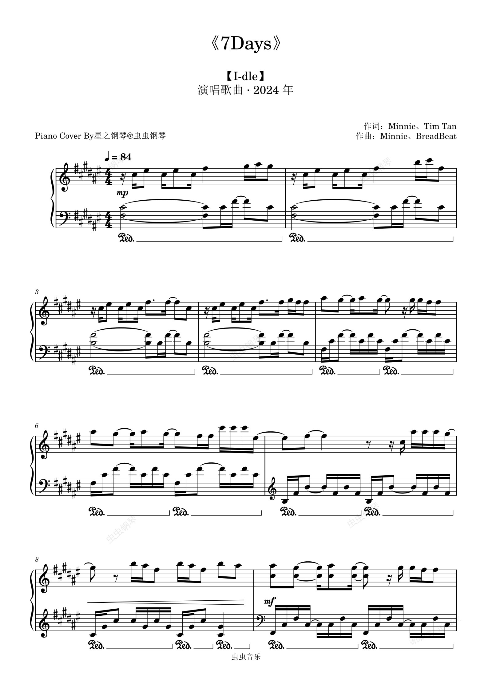 钢琴谱:【(G)i-dle】《7Days》还原钢琴谱~星之钢琴~