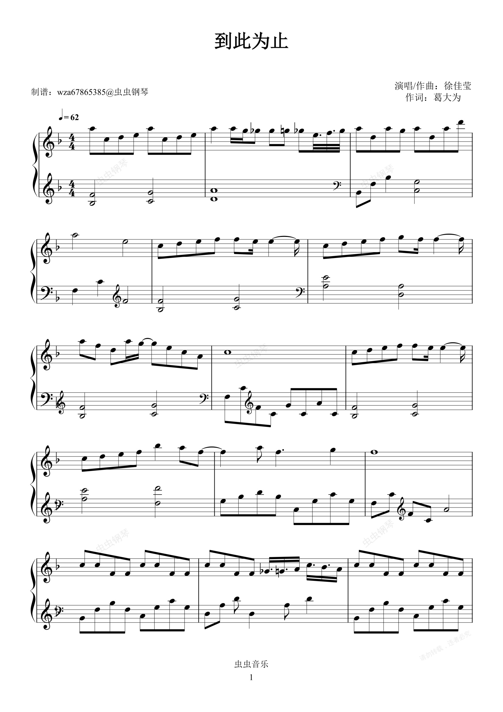 钢琴谱:到此为止