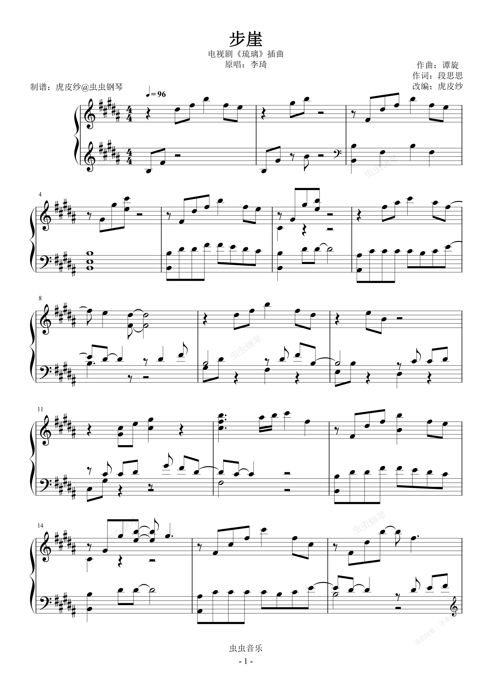 钢琴谱:琉璃 步崖 李琦 禹司凤个人曲