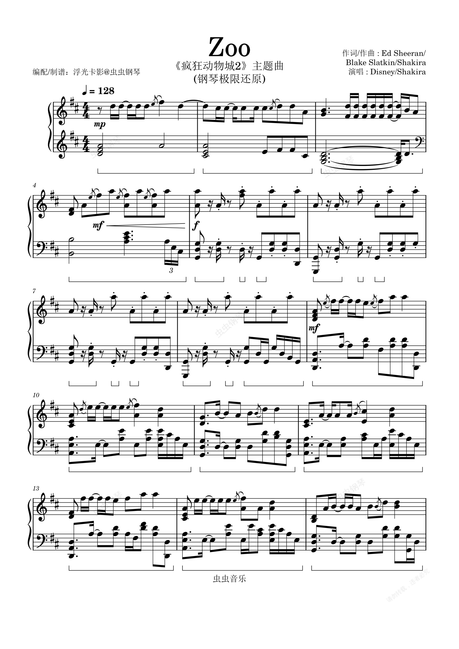 钢琴谱:《Zoo》钢琴极限还原(《疯狂动物城2》主题曲)-浮光卡影编配