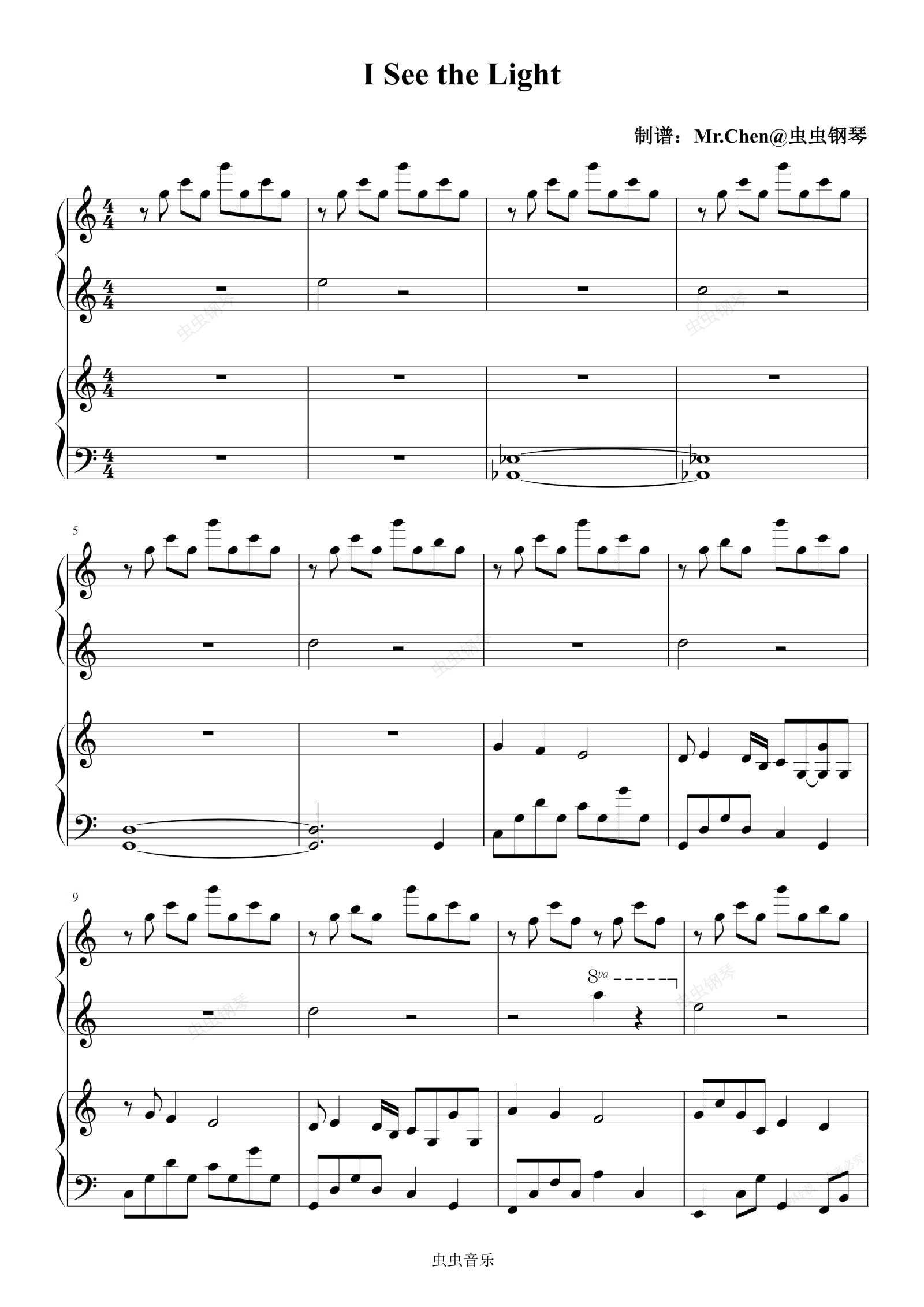 钢琴谱:I See the Light (四手联弹)- 迪士尼动画电影《魔发奇缘》主题曲