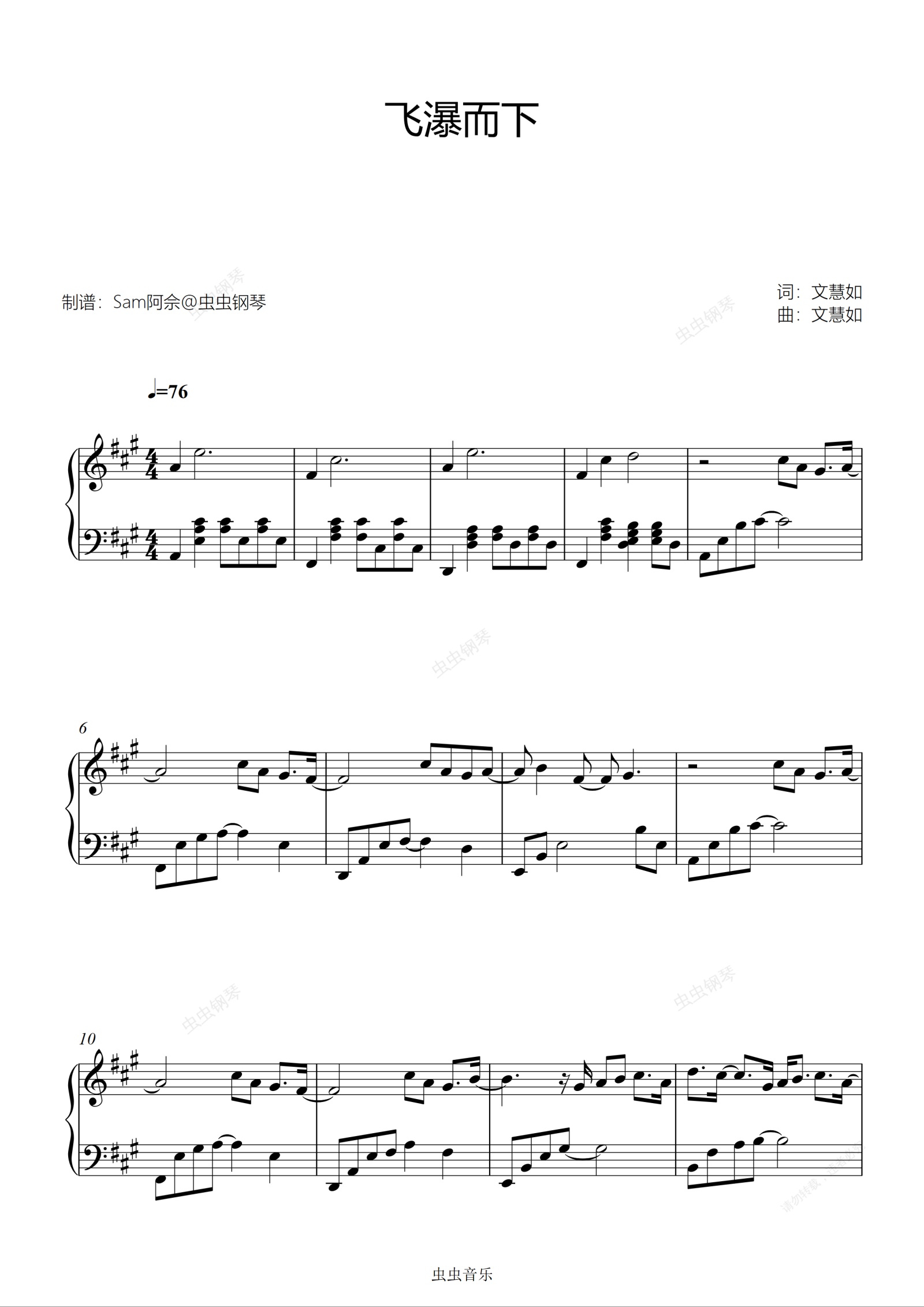 钢琴谱:原调《飞瀑而下》孙燕姿