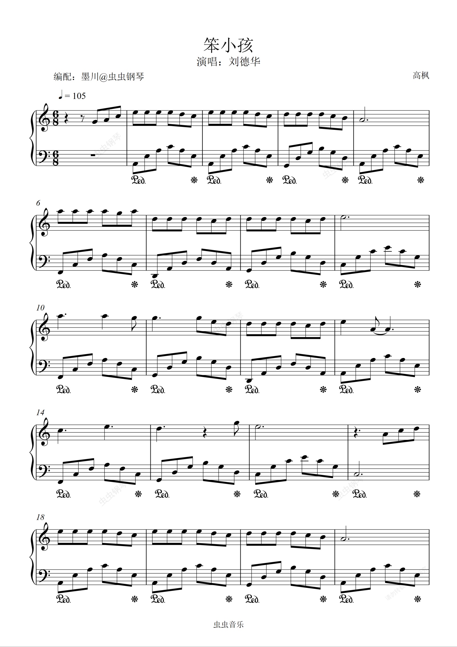 钢琴谱:笨小孩—刘德华—C调简易编配