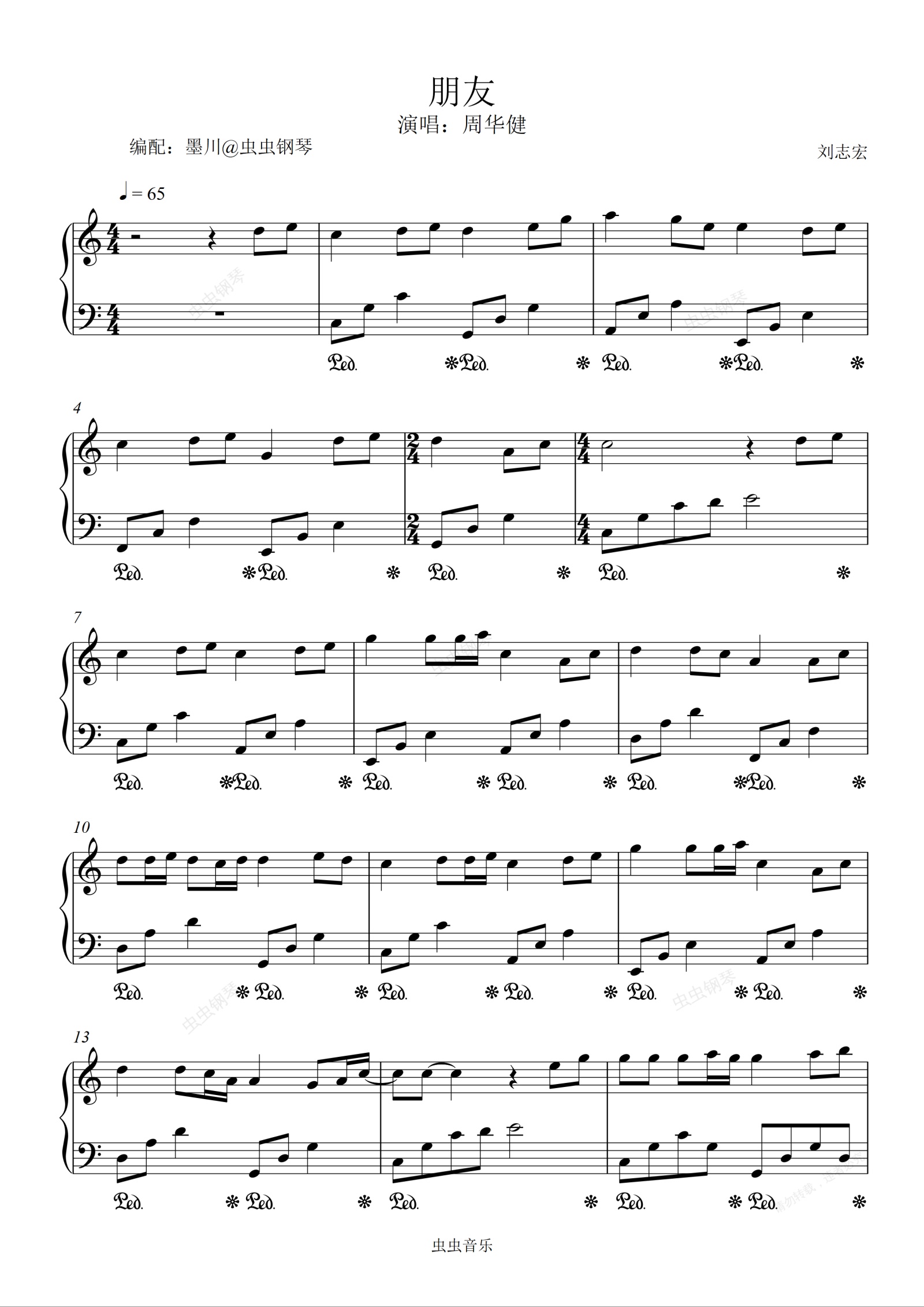 钢琴谱:朋友—周华健—C调简易编配