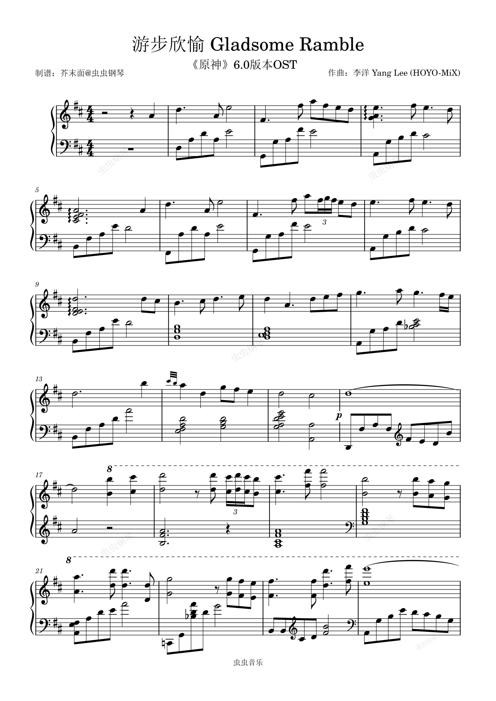 钢琴谱:游步欣愉 Gladsome Ramble(《原神》6.0版本OST)