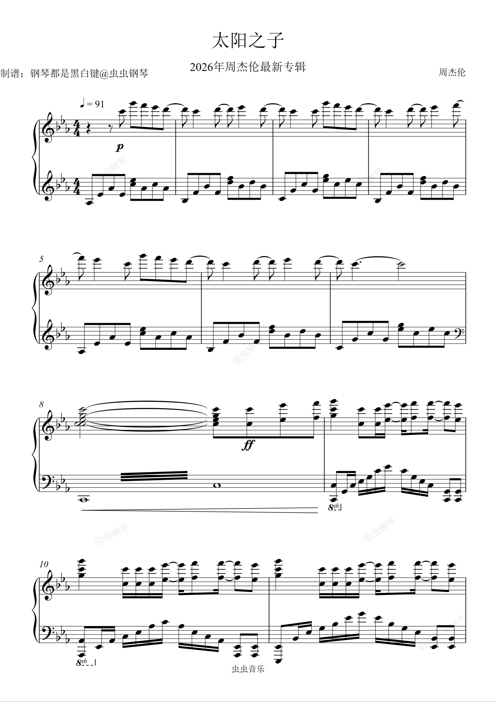 钢琴谱:【周杰伦太阳之子】太阳,所到之处即带来光(钢琴演奏版片段)