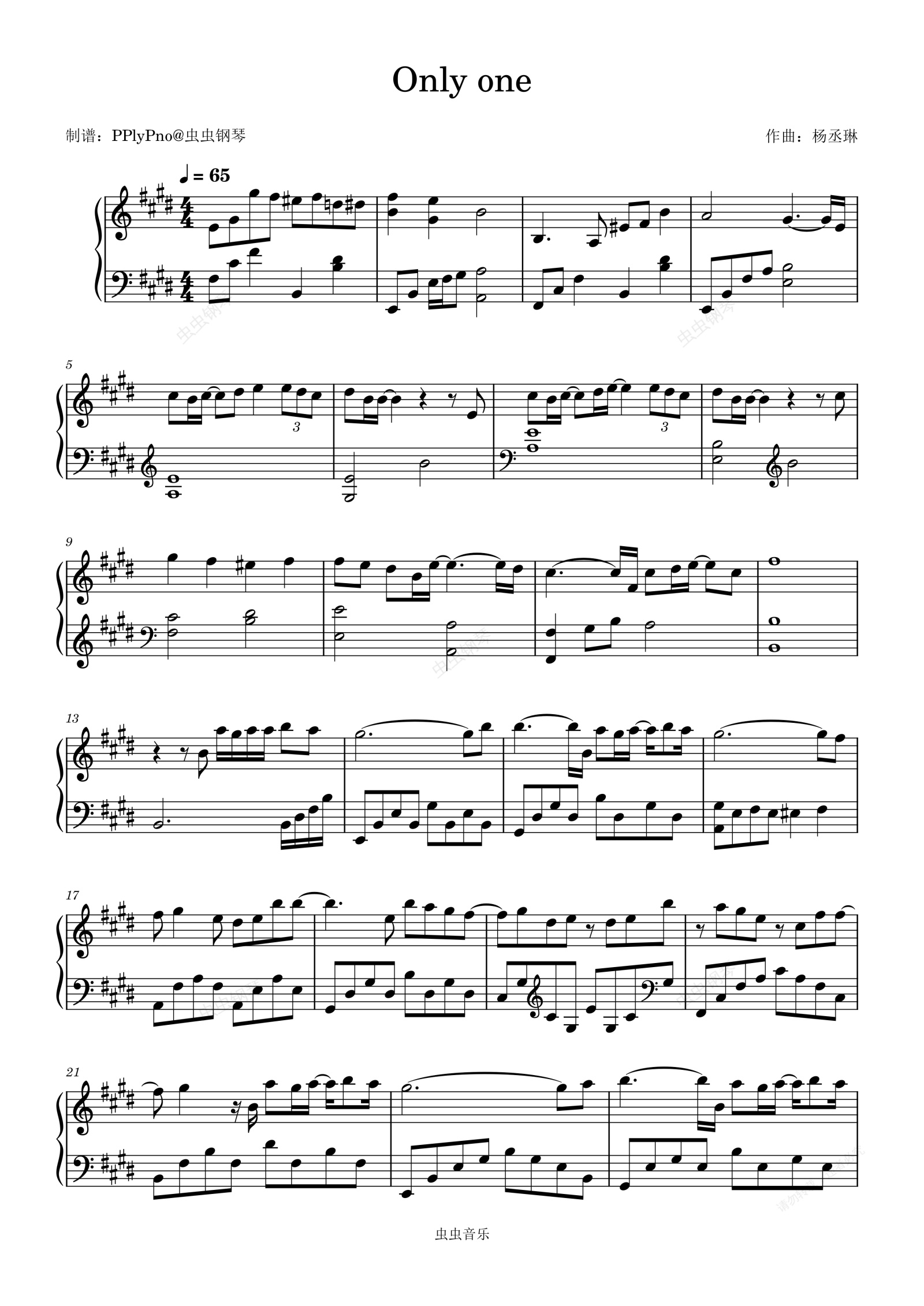 钢琴谱:Only one